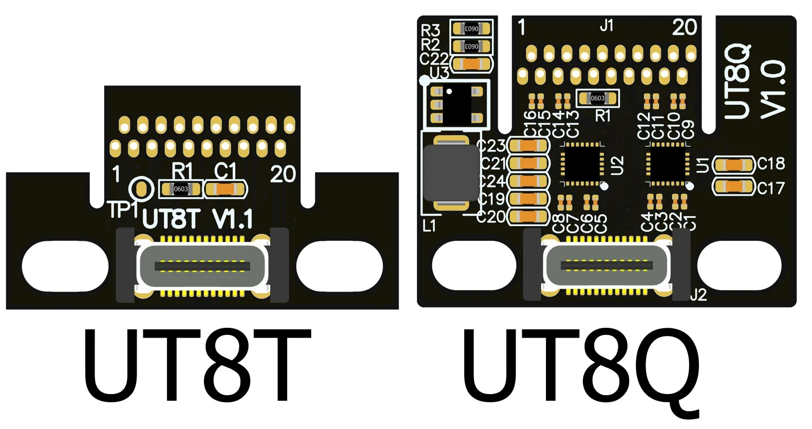 El modelo UT8T no tiene chip, y la atenuación de la señal después de que los dos cables USB se conecten en serie puede no cumplir con los requisitos de transmisión de señal USB de alta velocidad.