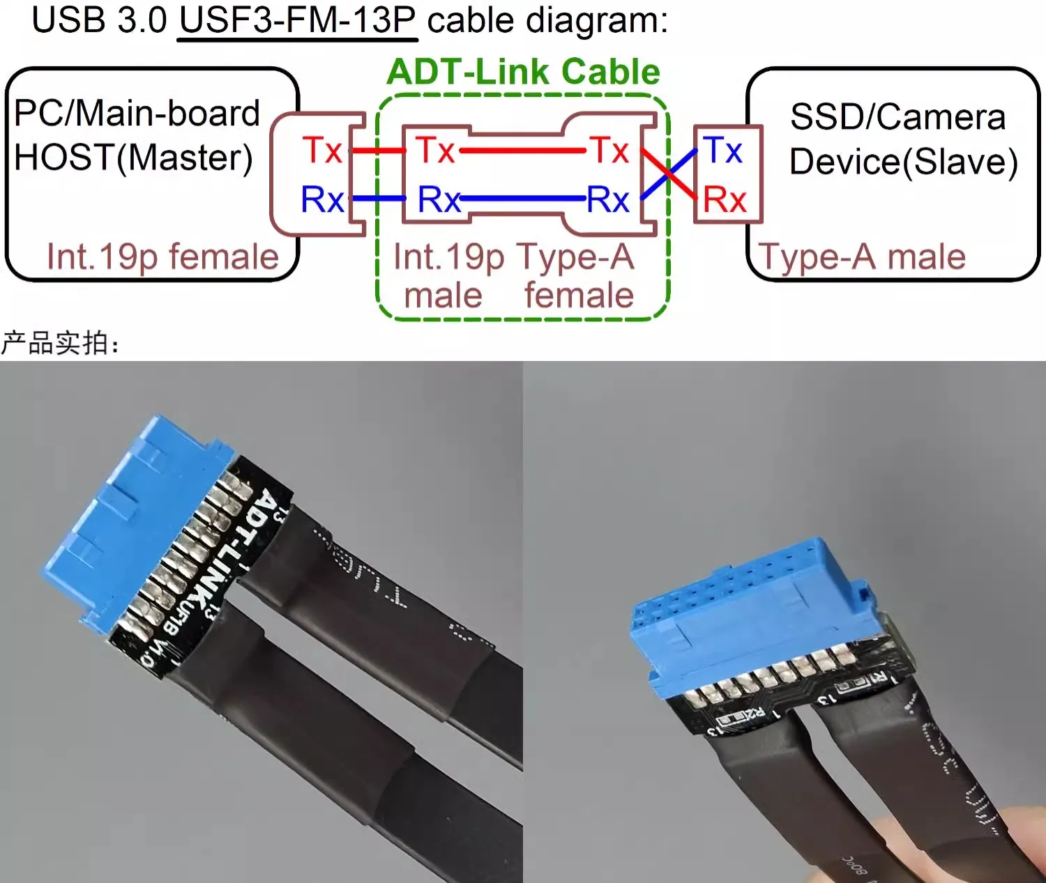Nombre del producto: USB 3,0 tipo A hembra a cable plano macho interno de 19 pines