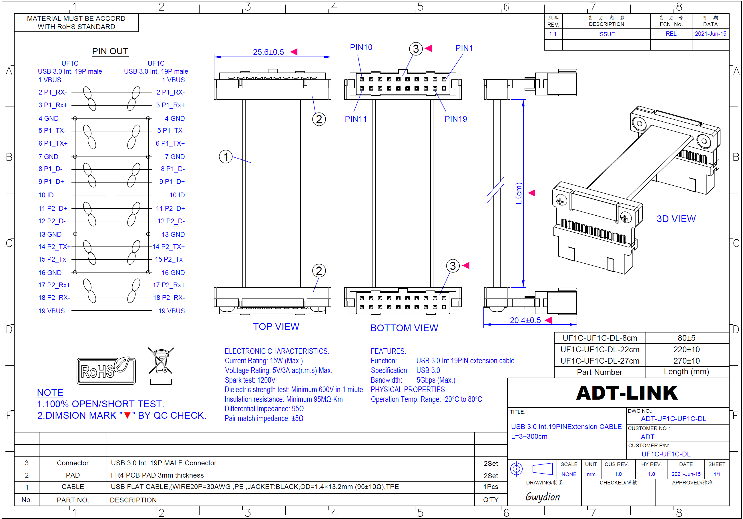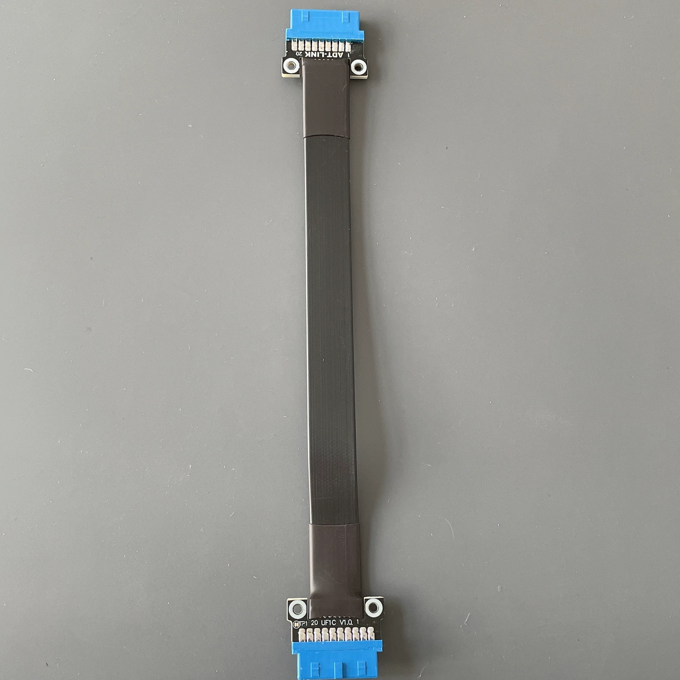 Comprar Adt-link-adaptador interno de Panel frontal USB 3,0, 19P, cabezal de enchufe macho Int.19P a Int.19Pin, extensor macho, Cable plano con orificios de tornillo