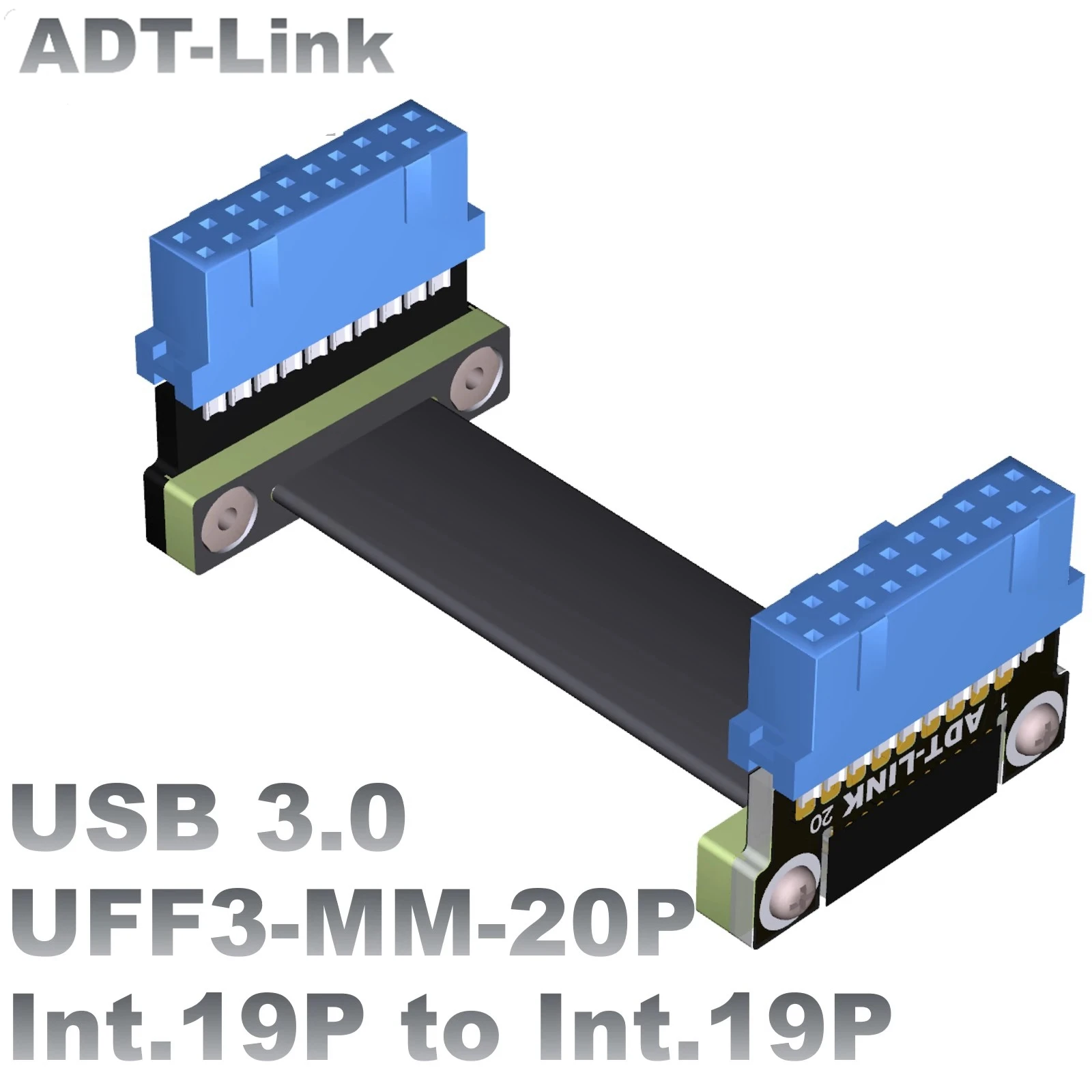 Comprar Adt-link-adaptador interno de Panel frontal USB 3,0, 19P, cabezal de enchufe macho Int.19P a Int.19Pin, extensor macho, Cable plano con orificios de tornillo