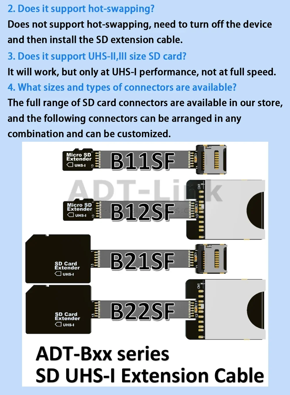 Velocidad del producto: Longitud del cable 3 ~ 30 cm Admite tarjeta de alta velocidad UHS-I de velocidad completa