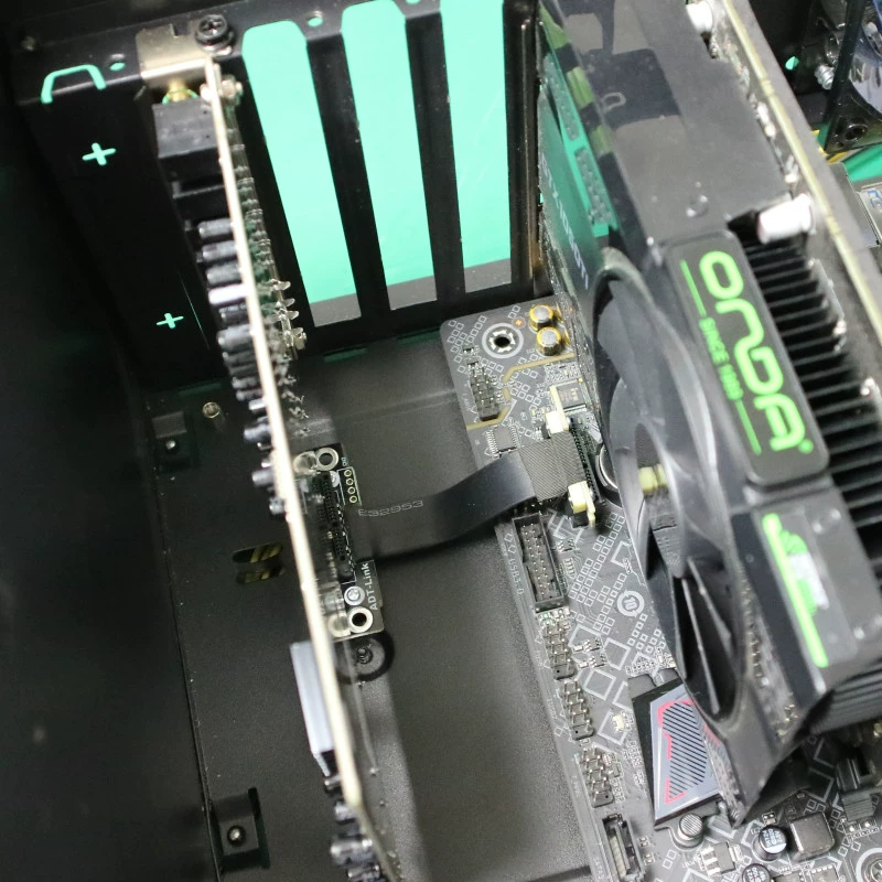 Usando el modelo de cable de extensión de tarjeta de sonido de 5cm, puede mover la tarjeta de sonido 3 ranuras a la izquierda, para que la tarjeta de sonido esté lejos de la tarjeta gráfica, que resuelve el problema de interferencia mutua.