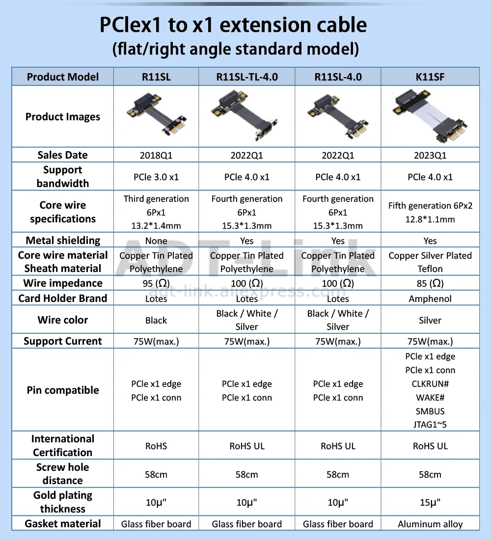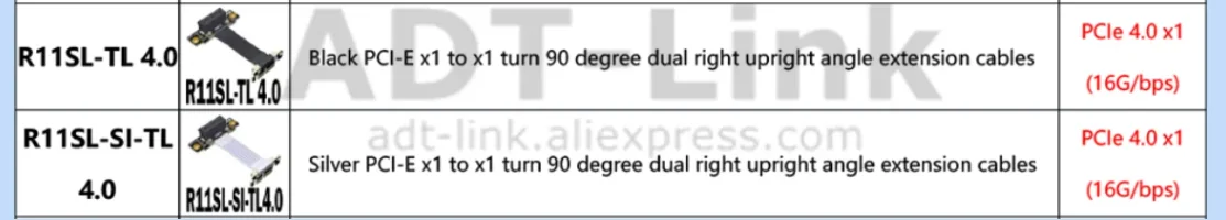 Comprar Adt-link-Cable elevador Dual PCIe de ángulo recto de 90 °, 4,0x1 a x1, PCI Express de alta velocidad, 1x, extensor de GPU para gráficos, R11SL-TL 4,0, 16G/bps