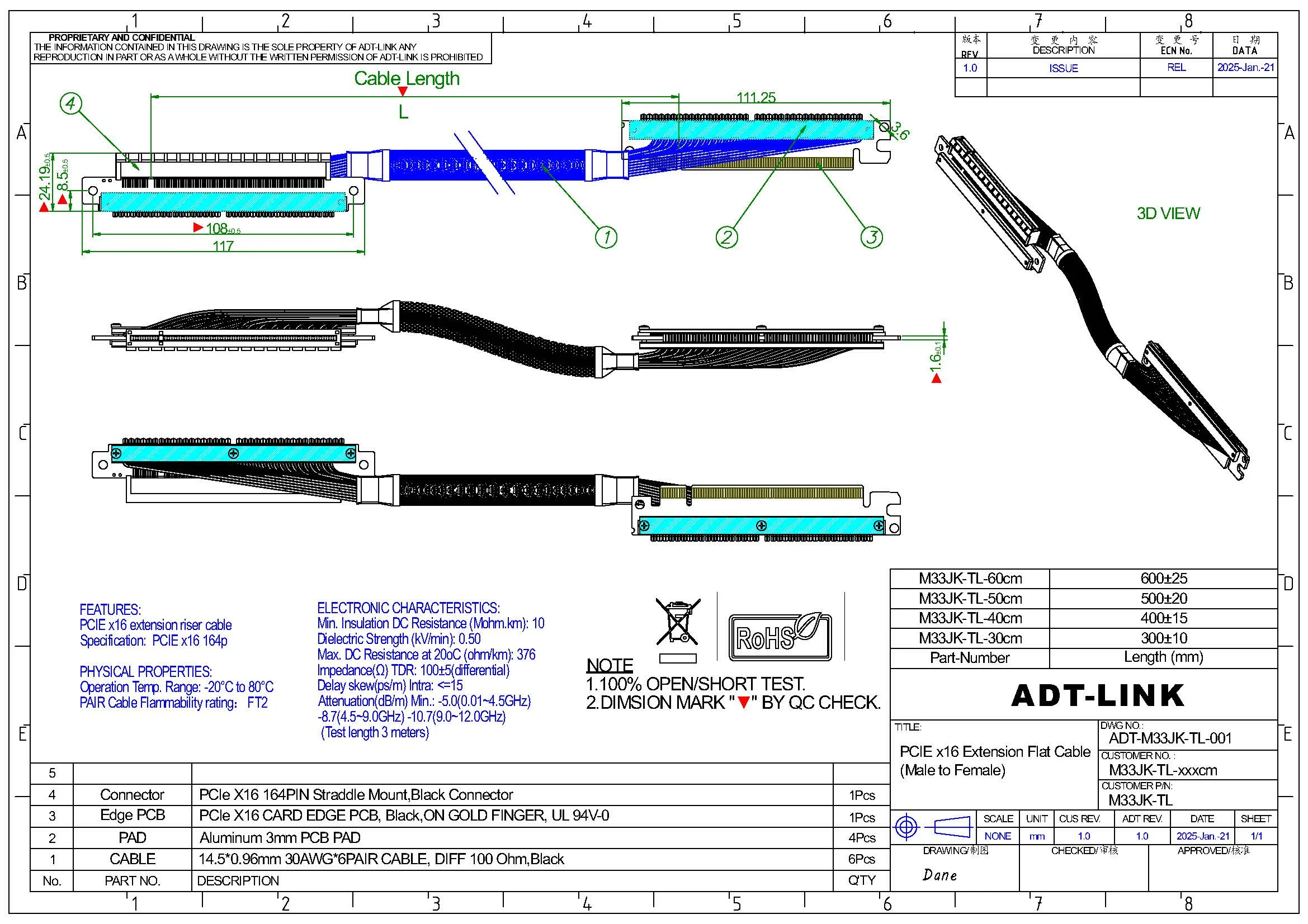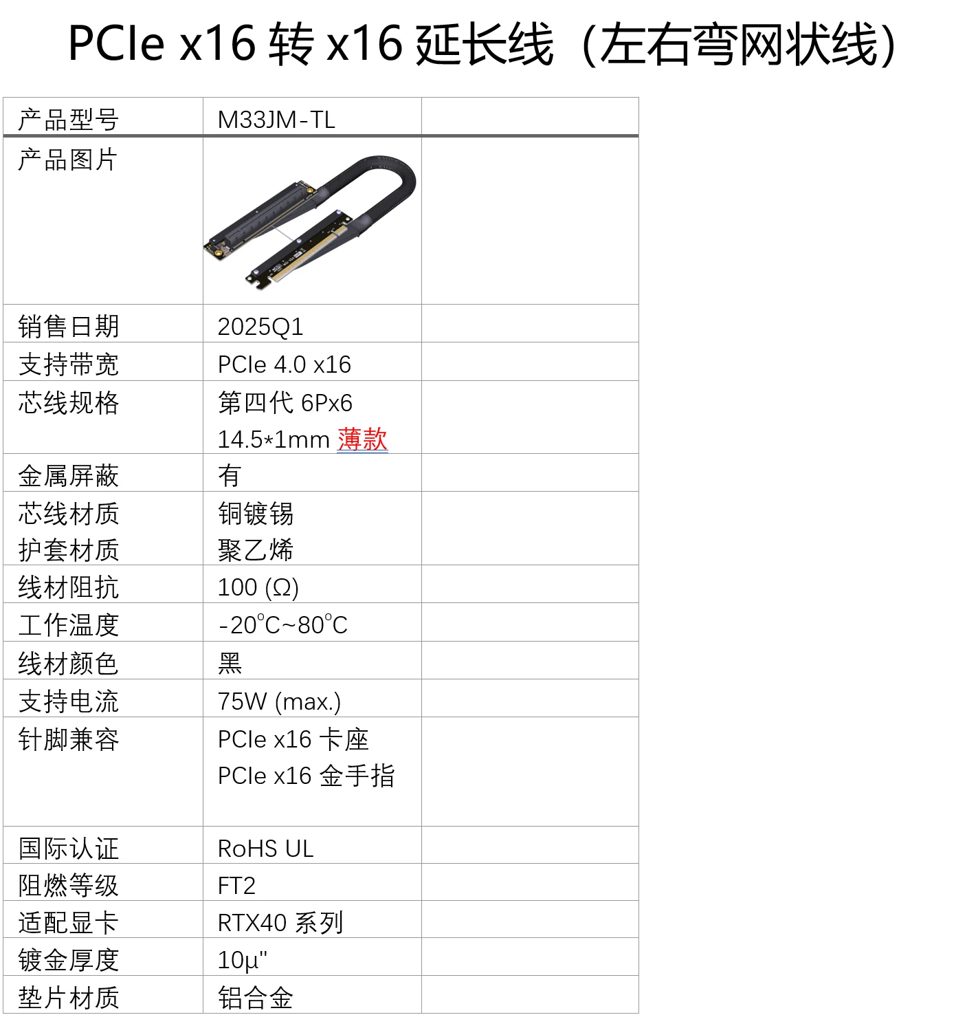 El cable es el cable dedicado PCIe de quinta generación desarrollado independientemente por ADT, con un diámetro de sólo 0,96 mm, que se puede doblar libremente sin afectar su uso.