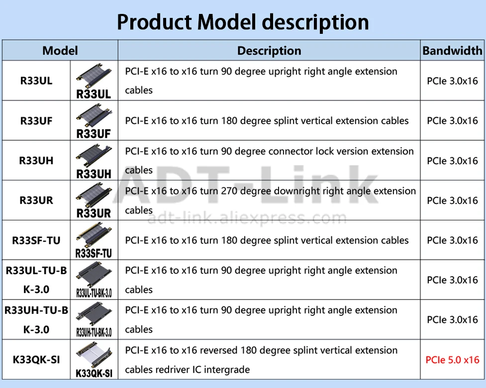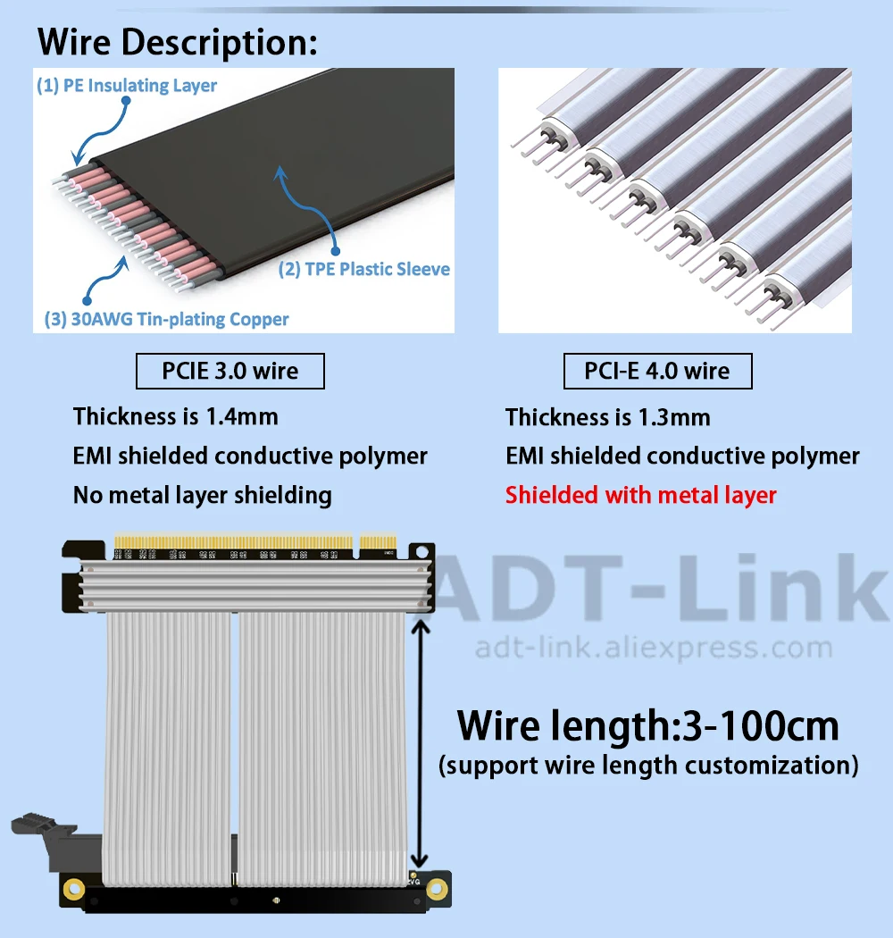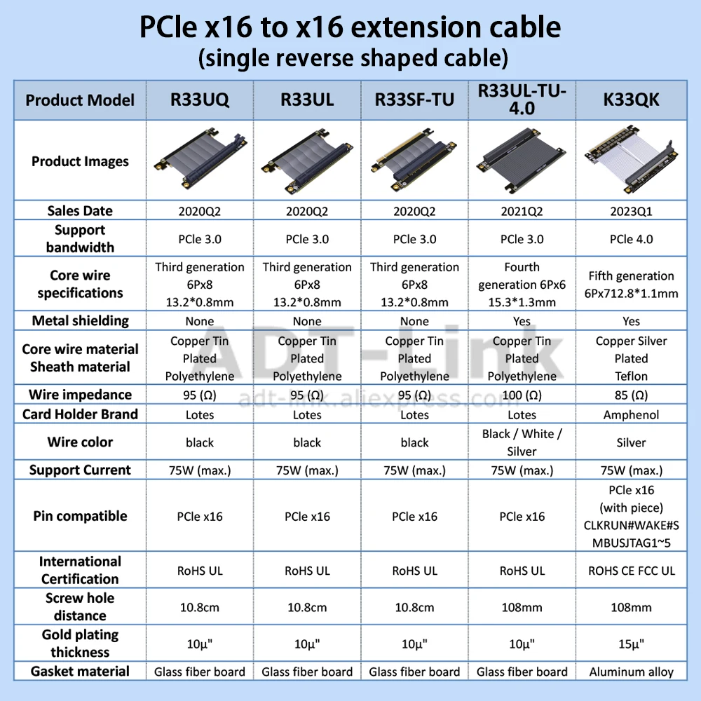 Comprar Adt-link-Cable elevador pci-express x16 3,0, velocidad completa estable para chasis A4 ITX, doble/único ángulo inverso, tarjeta gráfica 16x GPU