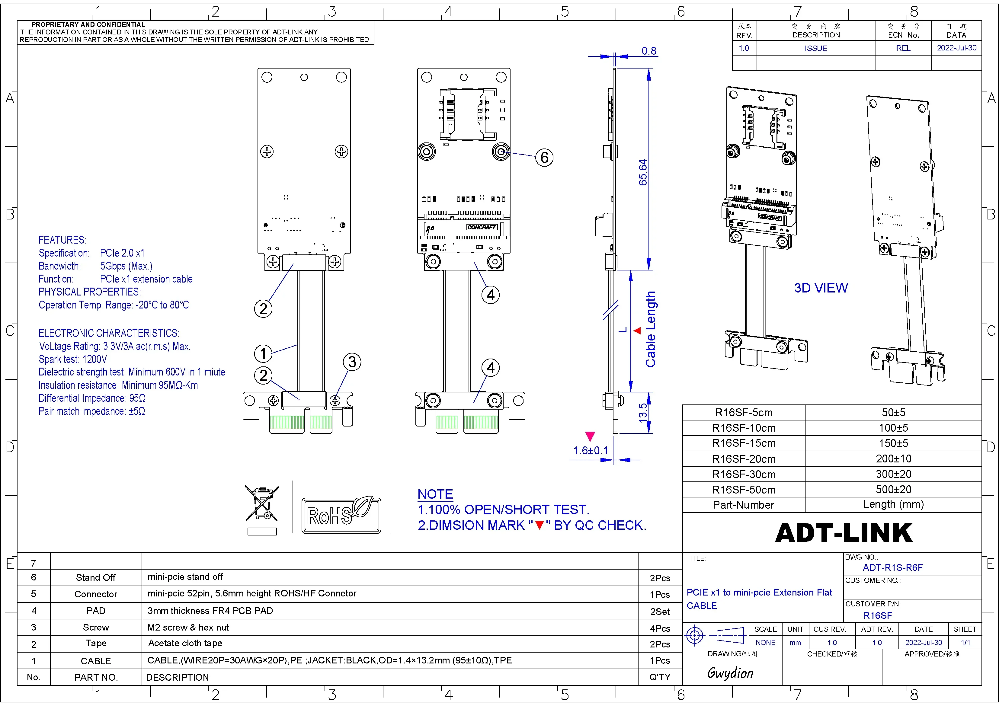 Comprar Adt-link-Cable elevador PCIe 3,0 X1 a M.2 NVMe/M.2 Wifi/mini-pcie, adaptador de extensión de tarjeta gráfica, tarjeta de red inalámbrica de alta velocidad
