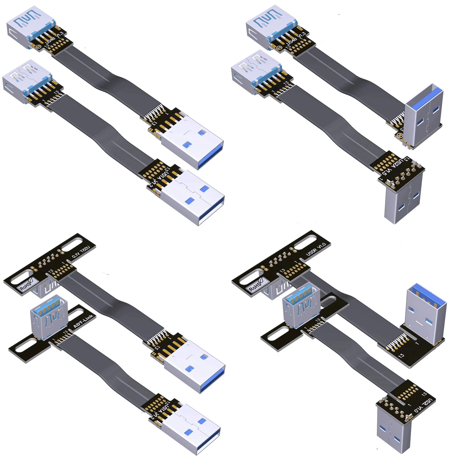 Comprar Adt-link-Cable de extensión de cinta plana, adaptador de doble ángulo, USB 3,0, macho A hembra, ultrafino, FPV, FPC, tipo A, hembra A USB A macho