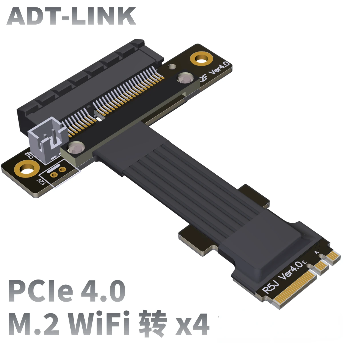 Comprar Adt-link-Cable de extensión PCIE 4,0 M.2 WiFi A.E.Key A x4, velocidad completa, PCI-E 4,0 M.2 WiFi A 4x SSD, Riser, adaptador plano de cinta