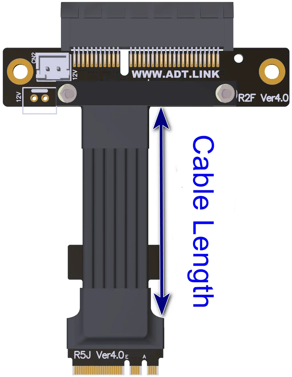 2. Ventaja de longitud del cable, se puede personalizar a 1 metro de 3 cm, el adaptador se vende en nuestra tienda, la impedancia del cable es baja, la longitud del cable dentro de 60 cm admite PCIe3.0 a velocidad completa.