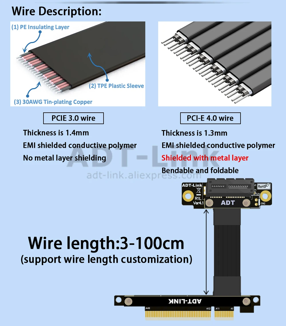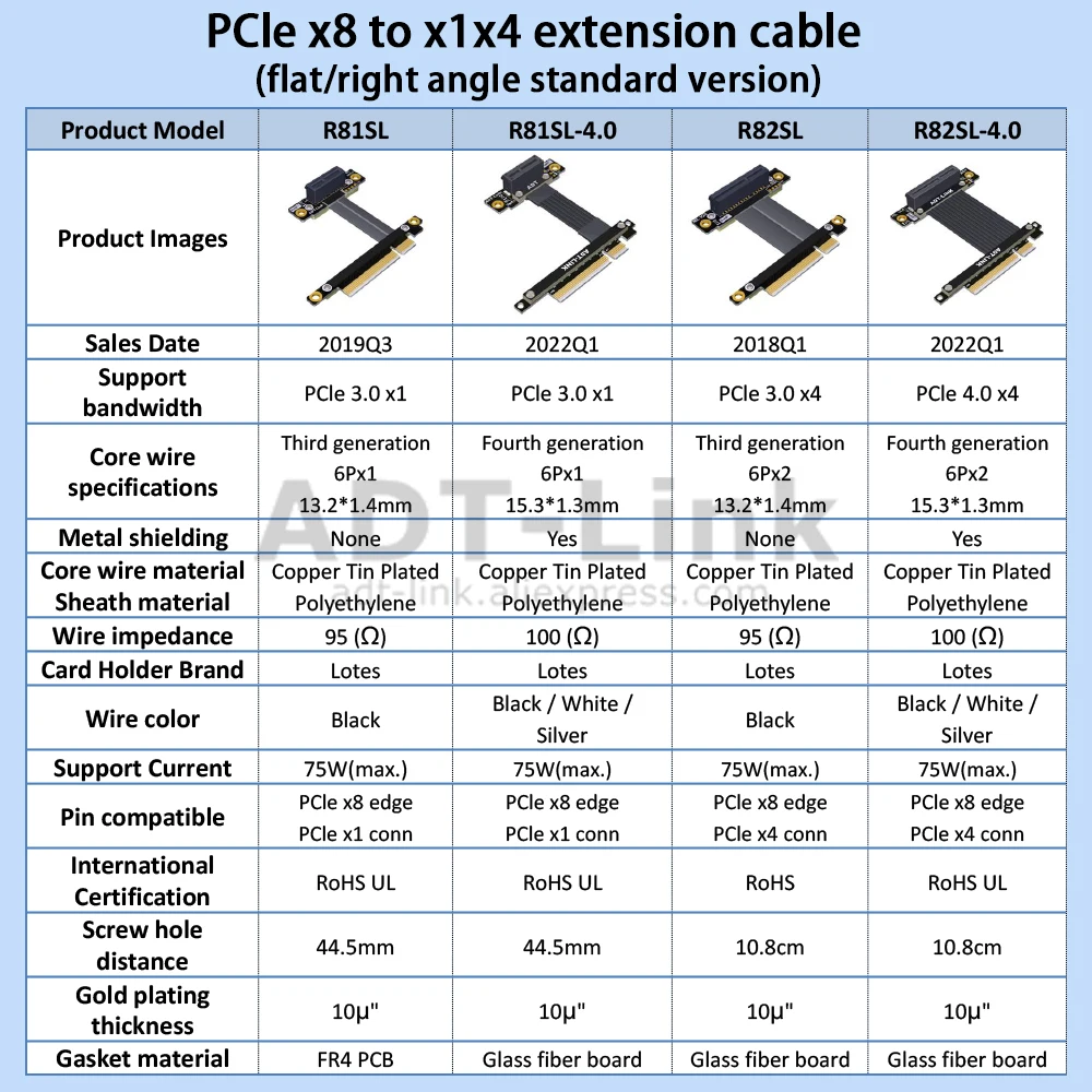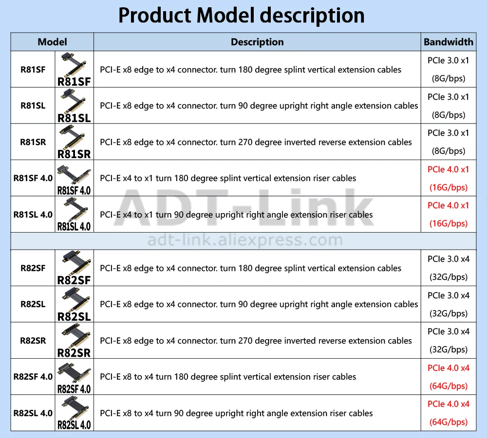 Comprar Adt-link-Cable de extensión para tarjeta de red, adaptador para disco duro, captura USB, tarjeta de sonido, GPU, PCI-E 3,0, 4,0, X8 a X1, X4