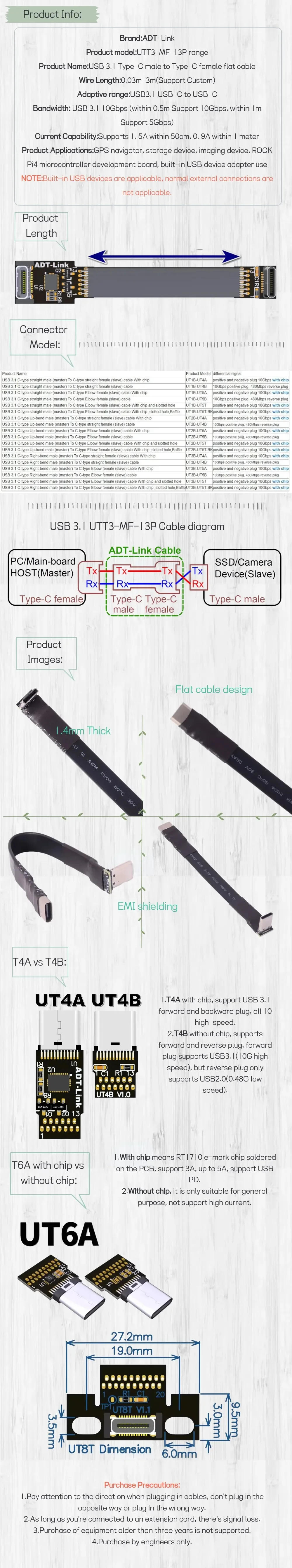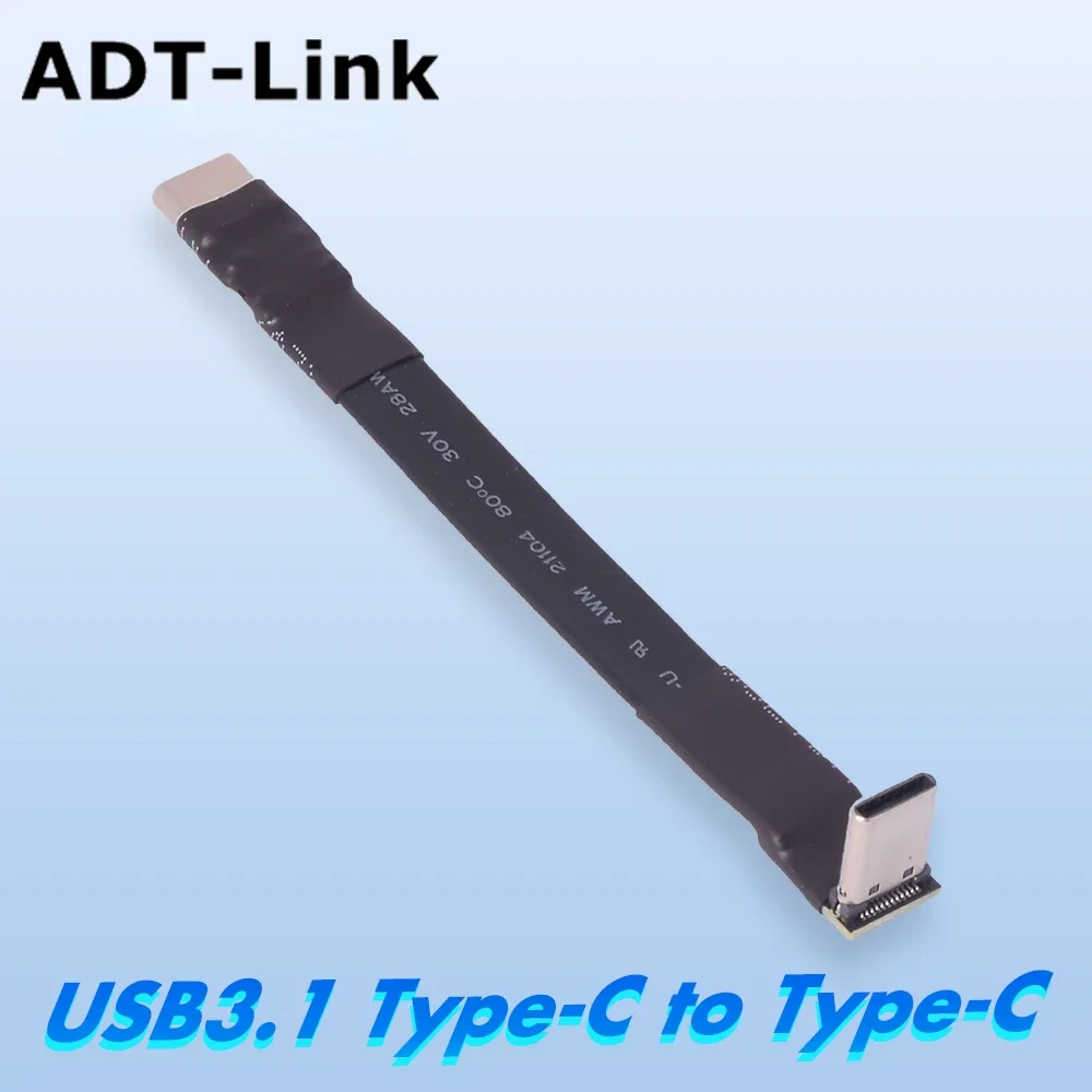 ADT-Link Cable plano USB 3.1 Tipo-C Macho a Tipo-C Hembra Cable flexible 90 ° Extensor incorporado USB C de 10 G/bps superior hacia abajo izquierdo y derecho