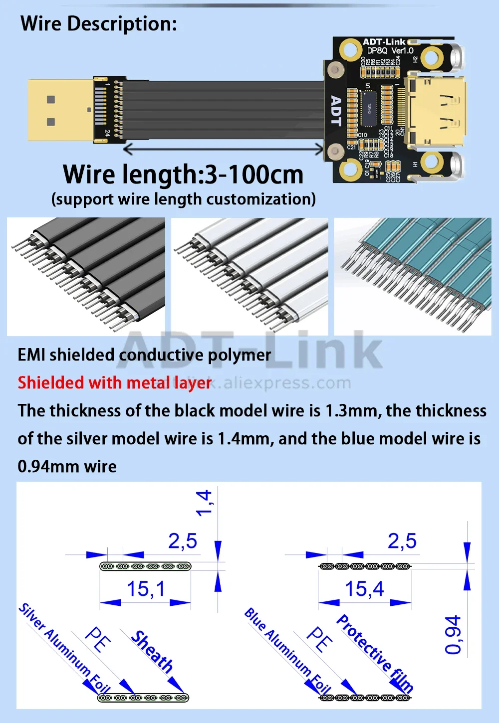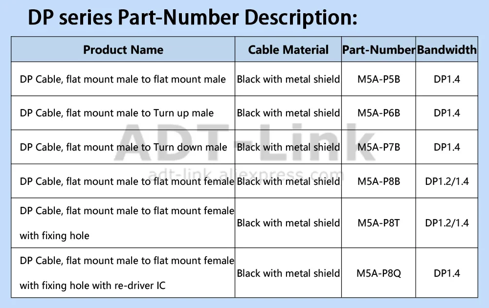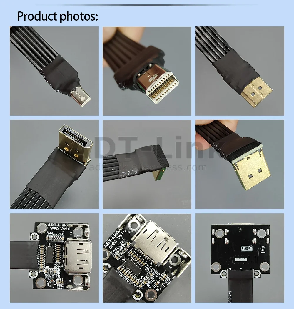 Comprar ADT-Link DP 1,2/1,4 a Mini-DP Mini Displayport gráficos Cable adaptador de cinta plana extensor blindado orificio de fijación soporte HDR/DSC