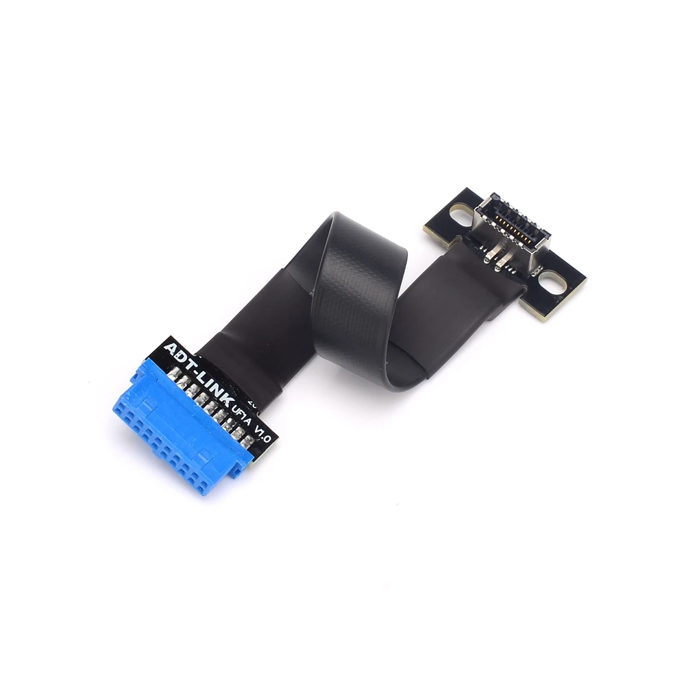 Comprar Adt-link-enchufe de Panel frontal USB 3,1 tipo C, adaptador de extensión plana, Cable de cinta, blindaje EMI, de 19 pines a TYPE-E, 20 pines