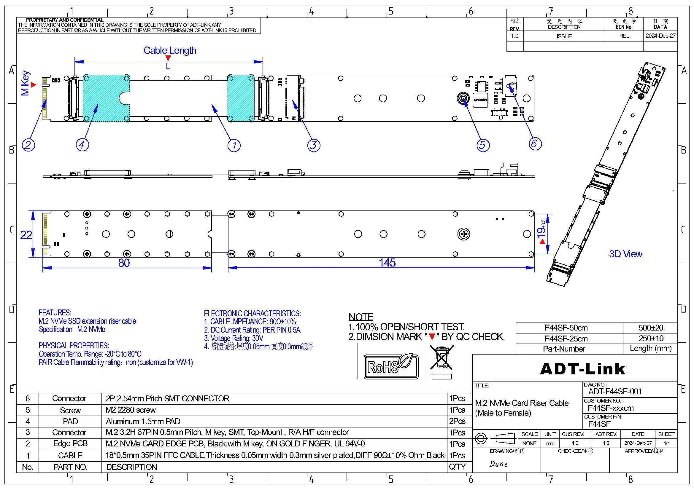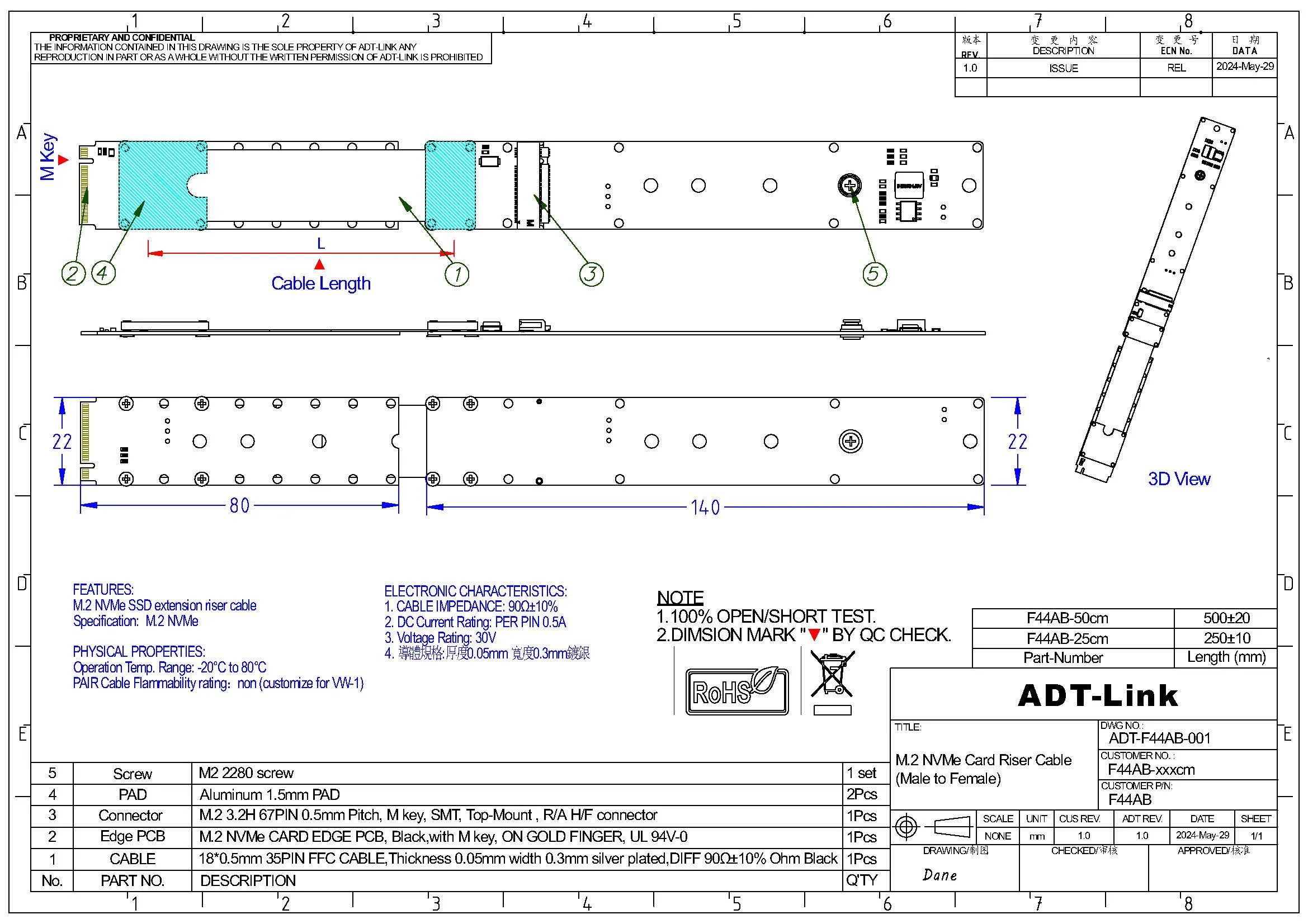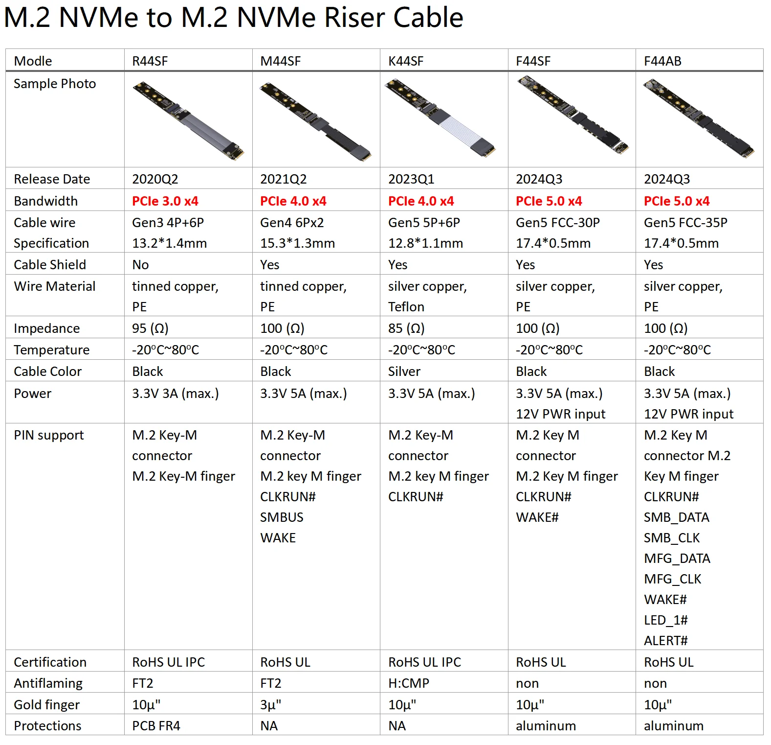 ADT-Link nuevo F44AB M.2 para NVMe SSD Cable de extensión FFC Tarjeta elevadora de unidad de estado sólido compatible con M2 a PCI Express 5.0 X4 PCI-E GEN5