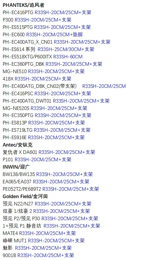 Modelo de chasis personalizado Modelo de cable de extensión de tarjeta gráfica ADT (solo como referencia, la longitud específica está sujeta a las especificaciones publicadas por el vendedor del chasis)