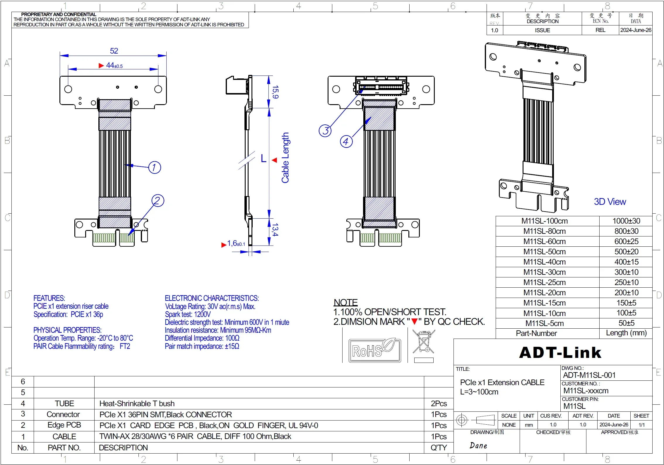 Cable de extensión ADT-Link PCI Express 4.0 x1