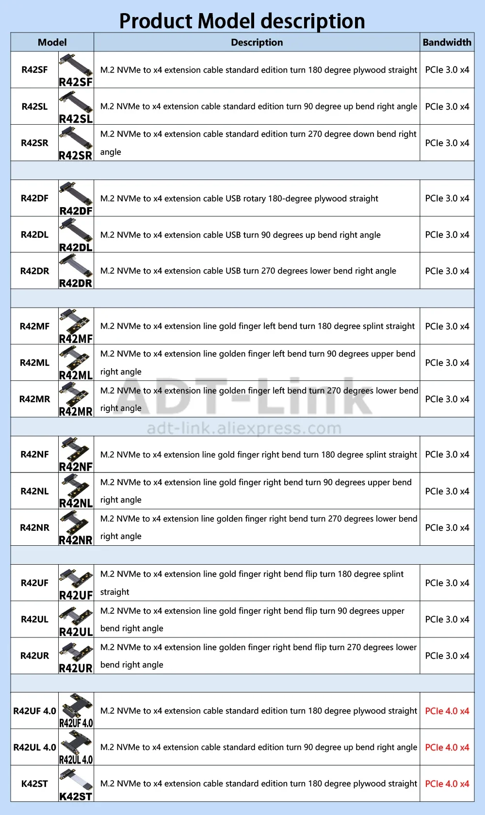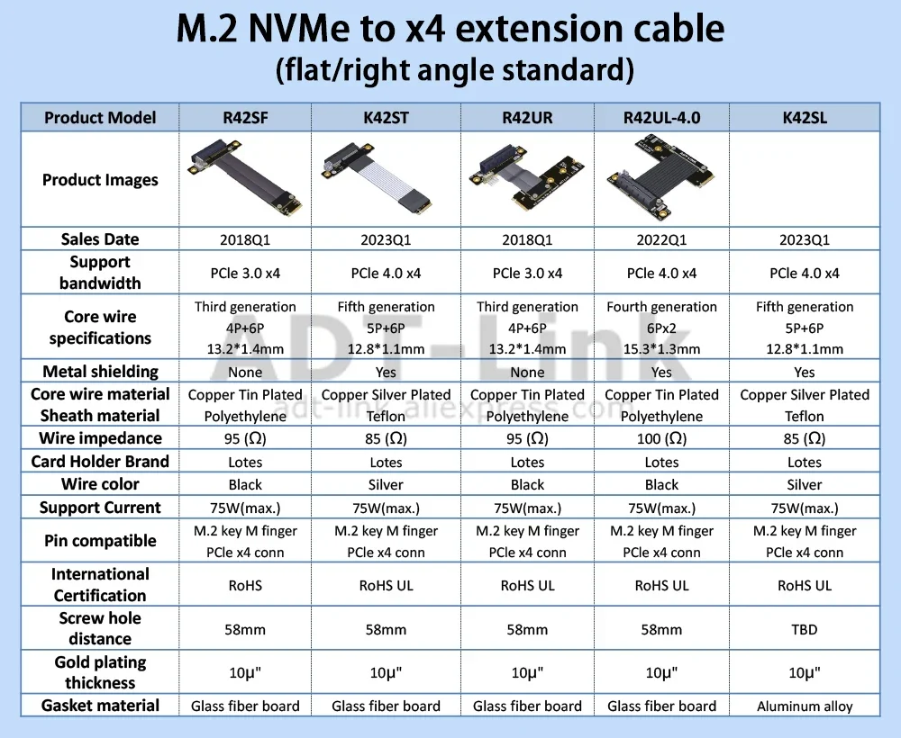 Comprar ADT-Link M.2 NVMe a PCIe 3,0 x4 Cable elevador para PCIe x4 SSD RAID, LAN, tarjetas de captura a M.2 (ultra SSD, M-key) M2 extensión Gen3