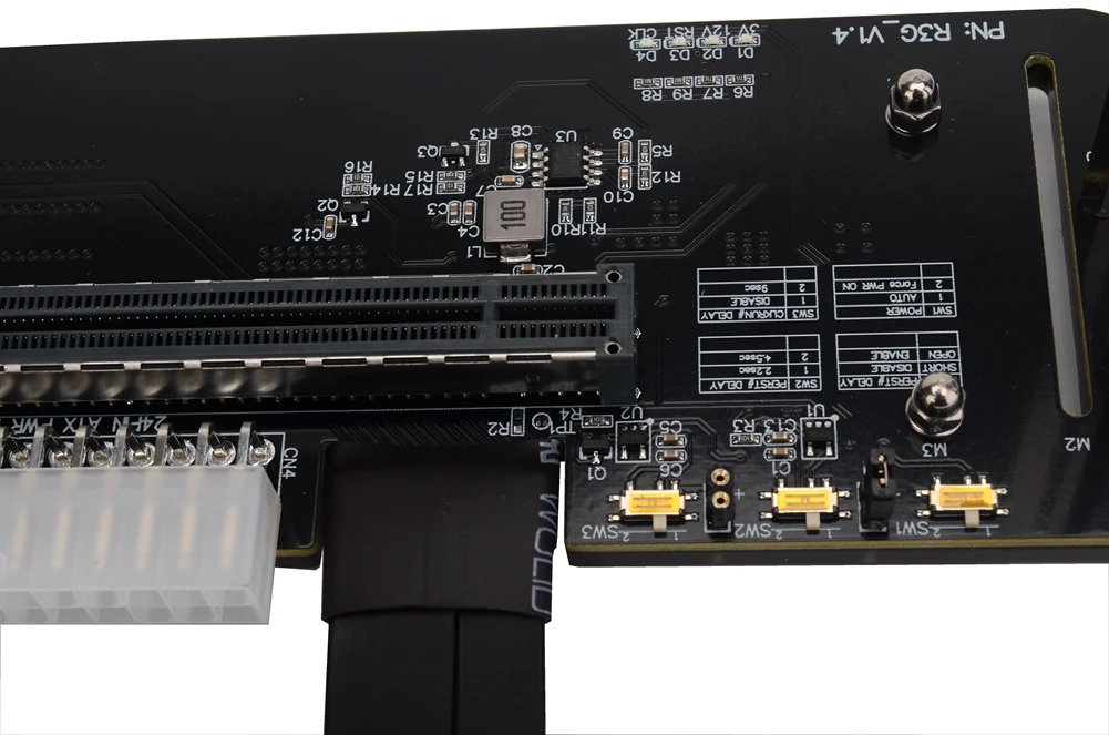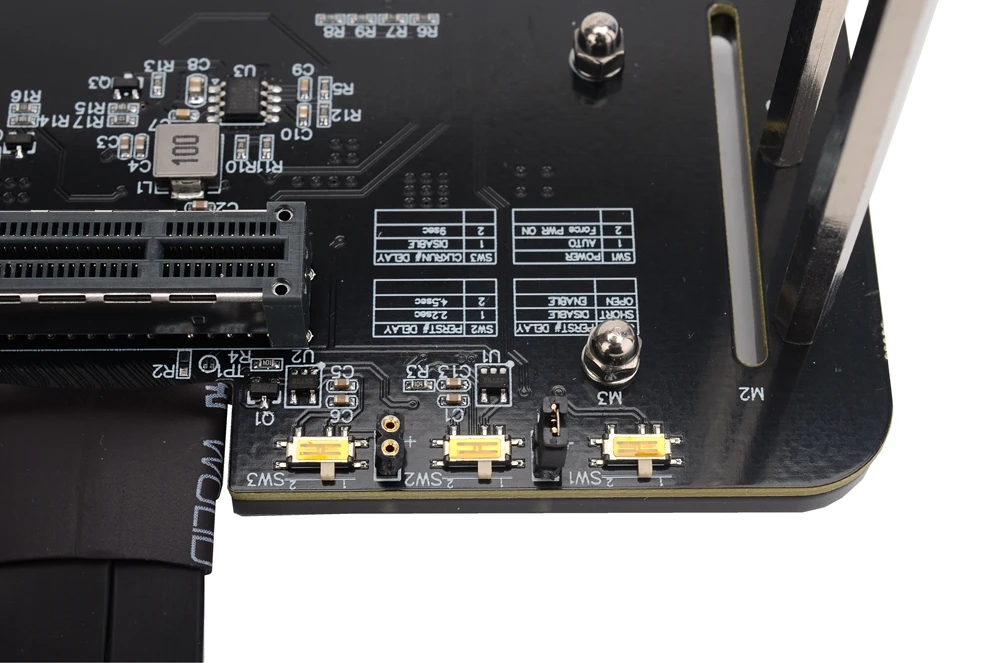 SW2, interruptor de retardo de señal PERST #, 1 retardo 2,2 segundos, 2 retardo 4,5 segundos, con software eGPU, para la optimización de la compatibilidad de la tarjeta gráfica, el software actual no es compatible, corte a 1