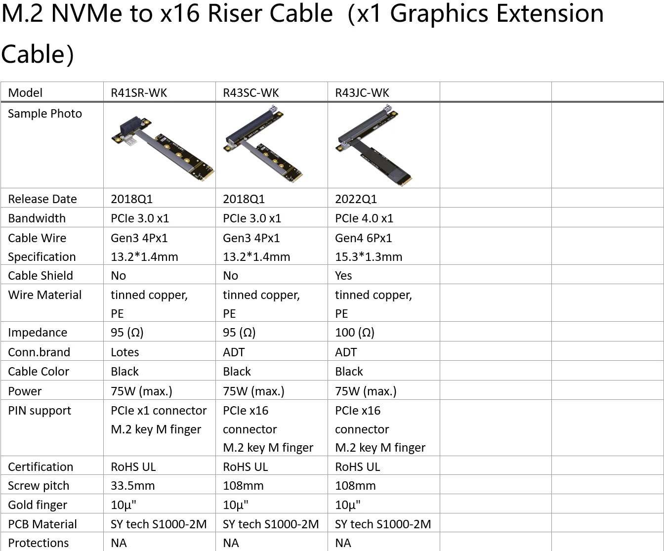 Nombre del producto Cable de extensión PCIe M.2 NVME a x16