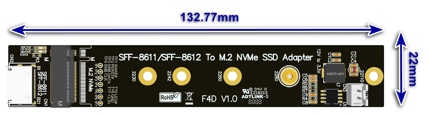Comprar ADT-Link PCIe 4,0 OcuLink SFF-8612/8611 a M.2 NVME adaptador de extensión de tarjeta elevadora para M.2 NGFF Key M (2230) tarjeta NVMe de 22mm x 80mm