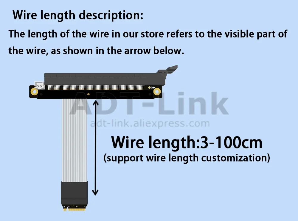 Comprar Adt-link-placa base M.2 NGFF NVMe STX, soporte de tarjeta gráfica, cable extensor a PCIE 4,0x16, 90 grados, ángulo de giro 16x, adaptador elevador