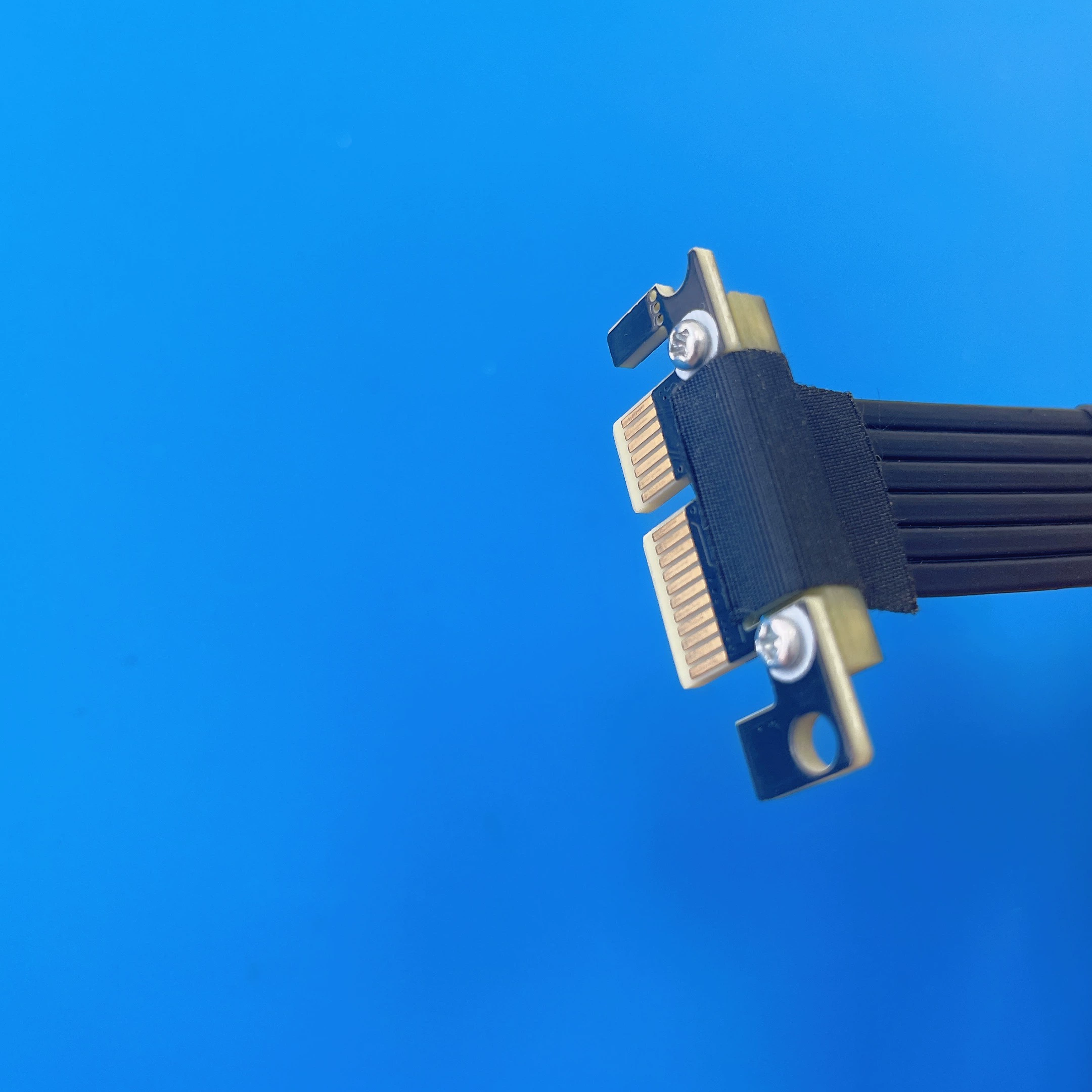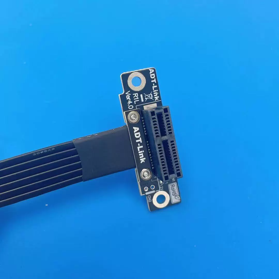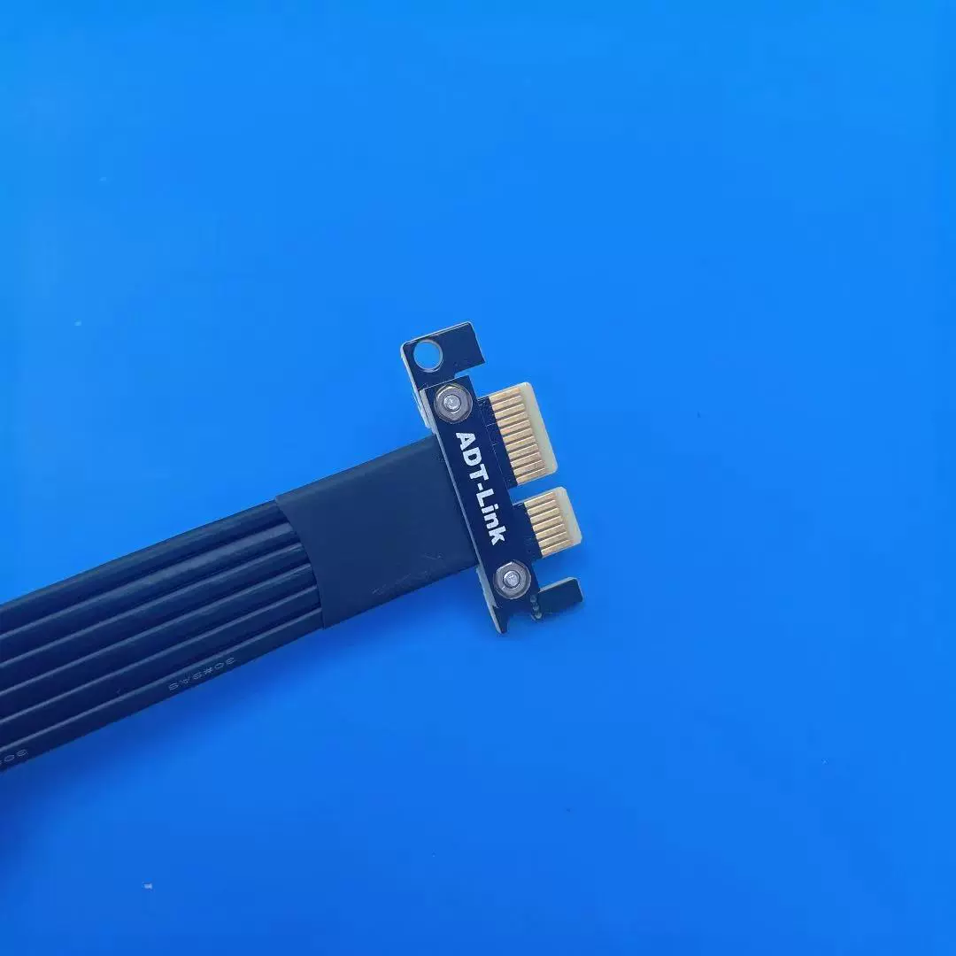 El cable es el cable dedicado PCIe de cuarta generación desarrollado y diseñado por ADT.El cable negro tiene un grosor de 1,3 mm, el cable plateado tiene un grosor de 1,4 mm y el cable azul tiene un grosor de 0,85 mm.El cable se puede doblar o doblar sin afectar el uso.