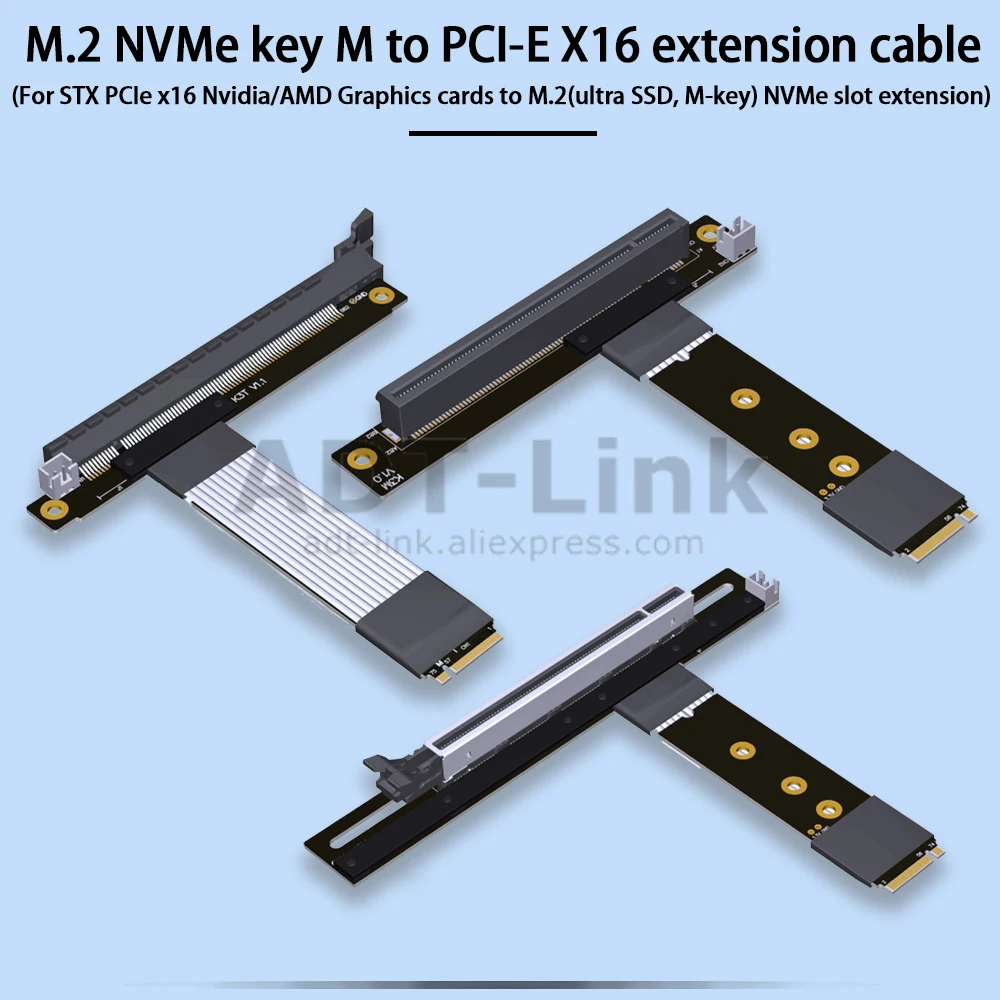 Comprar Adt-link-Tarjeta madre M.2 NGFF Key M NVMe STX, tarjeta gráfica, cable extensor a PCIE 4,0x16, ángulo de giro de 90 grados, adaptador elevador 16x