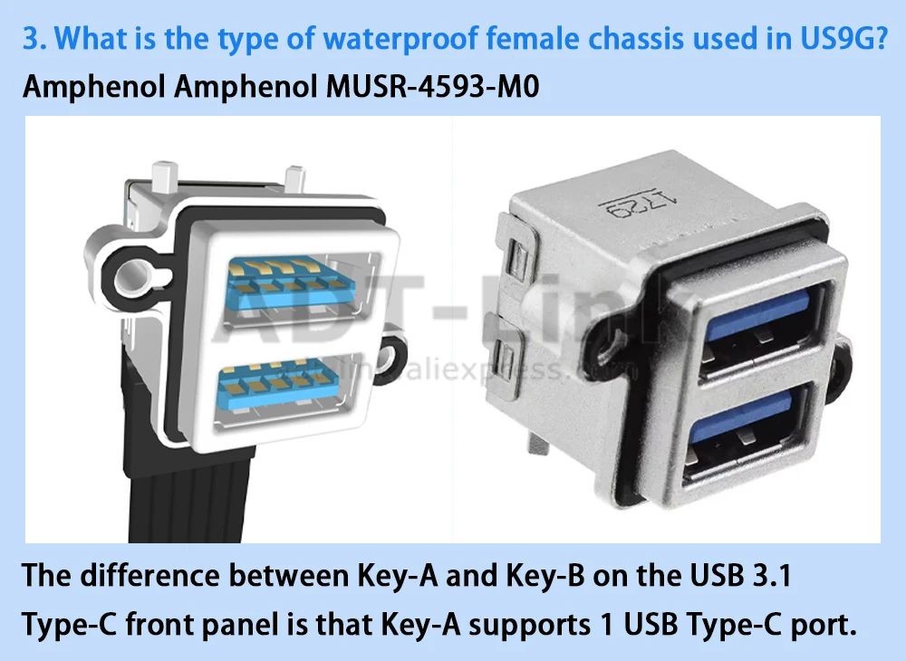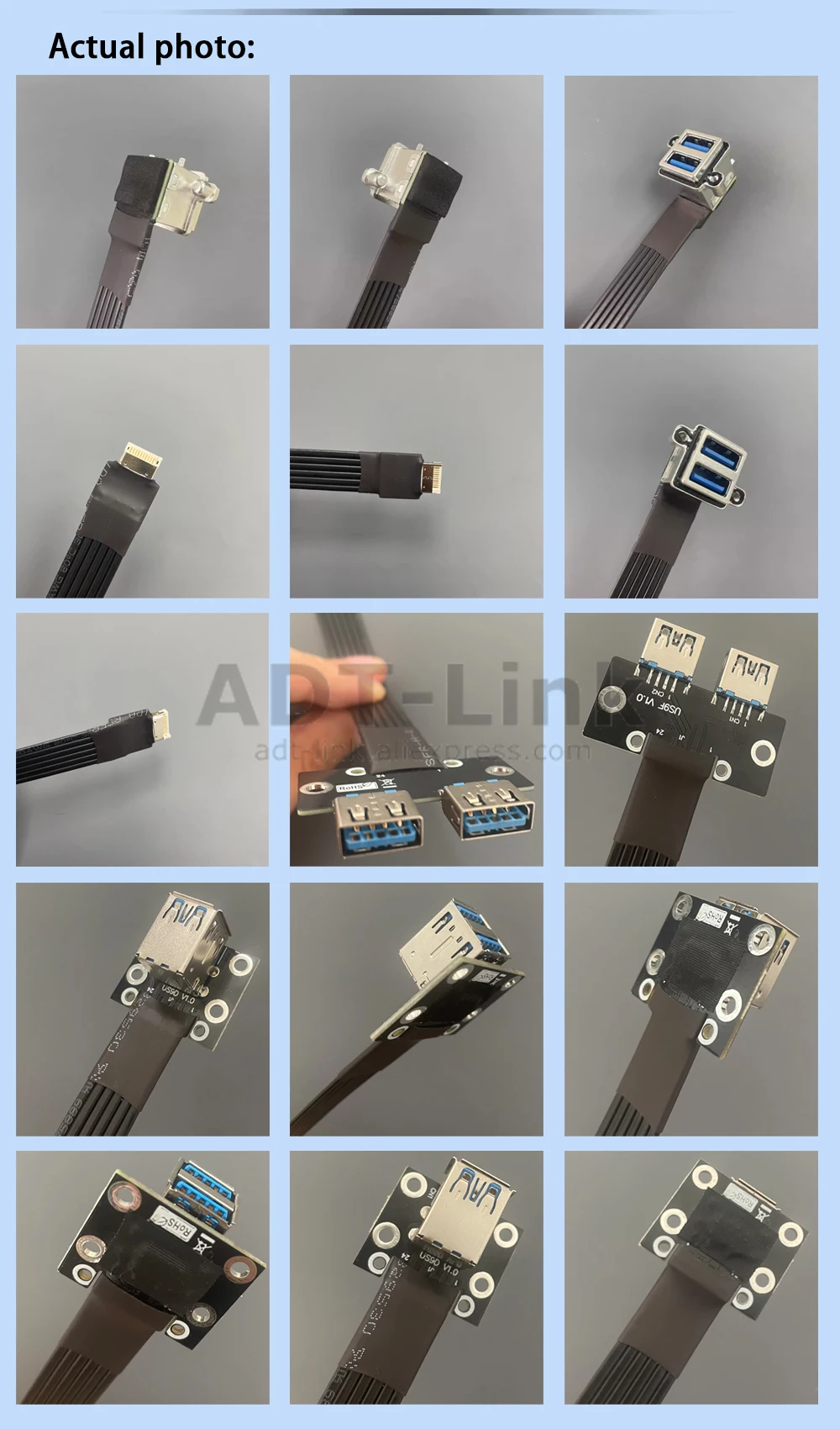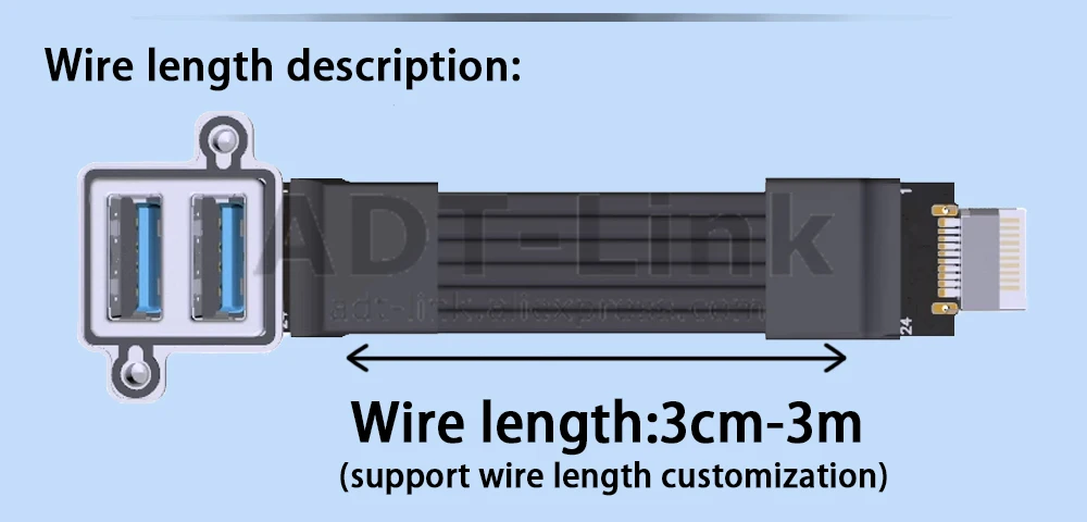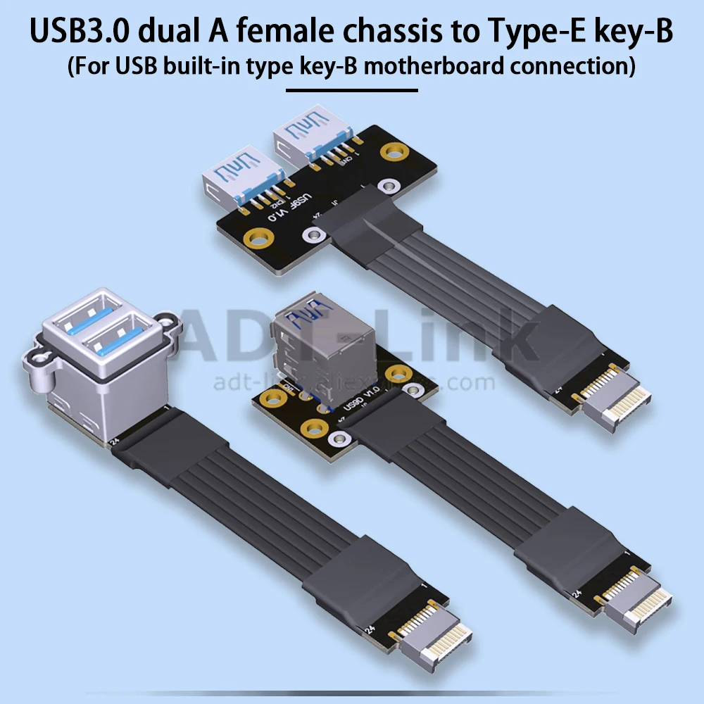 Comprar ADT-Link USB 3,0 doble tipo A hembra a Panel frontal tipo C tipo E Key-B adaptador de extensión macho interno de 20 pines Cable plano