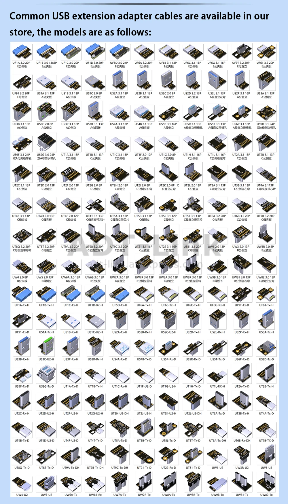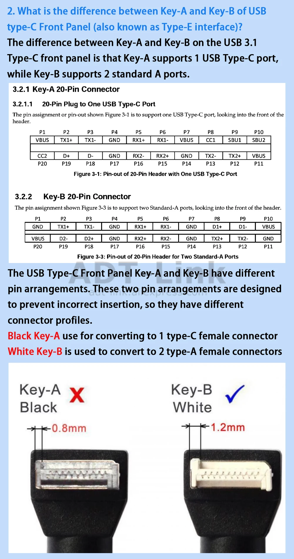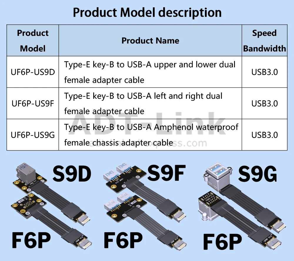 Comprar ADT-Link USB 3,0 doble tipo A hembra a Panel frontal tipo C tipo E Key-B adaptador de extensión macho interno de 20 pines Cable plano