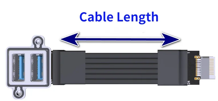 Nombre del producto: Chasis hembra dual USB-A 3.0 a cable de extensión integrado de 20P (tecla frontal tipo c) de tipo E key-B)