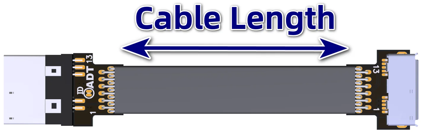 La longitud del cable se refiere a la parte del cable visible.No incluye la PCB ni el conector.Para conocer la longitud del cable, consulte la flecha azul de 5 cm en la siguiente figura.