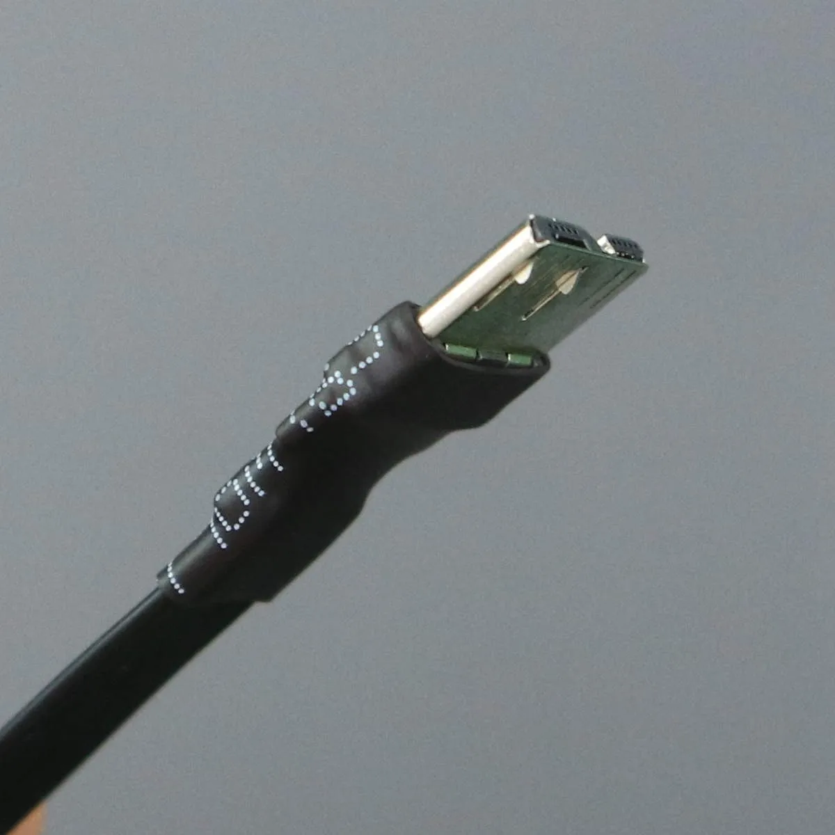 Sin escudo metálico. El extensor utiliza los últimos materiales para blindaje EMI con un diseño de cinco cables planos. Esta técnica permite que cada cable esté completamente cubierto por un blindaje contra interferencias electromagnéticas con polímero conductor para protegerlo contra las emisiones entrantes o salientes de frecuencias electromagnéticas, minimizar las perturbaciones y la degradación del rendimiento y reducir el peso del extensor.