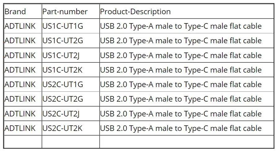 Descripción del número de pieza de la serie ADT USB: