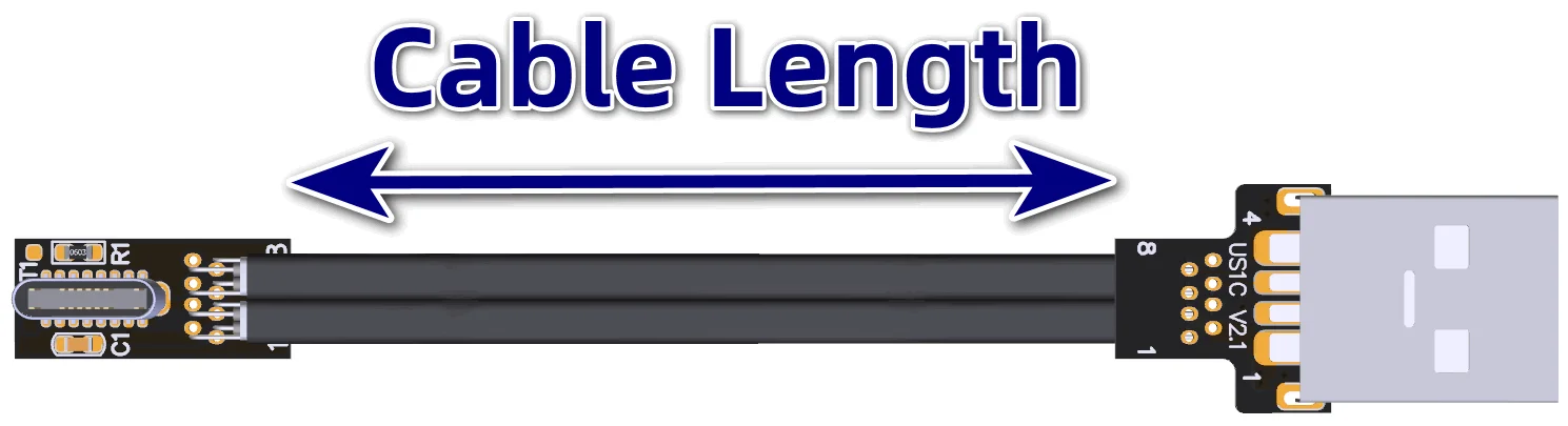 La Longitud del cable se refiere a la parte del cable visible. No incluye el PCB ni el conector. Para la longitud del cable, consulte la flecha azul de 5cm en la siguiente figura.