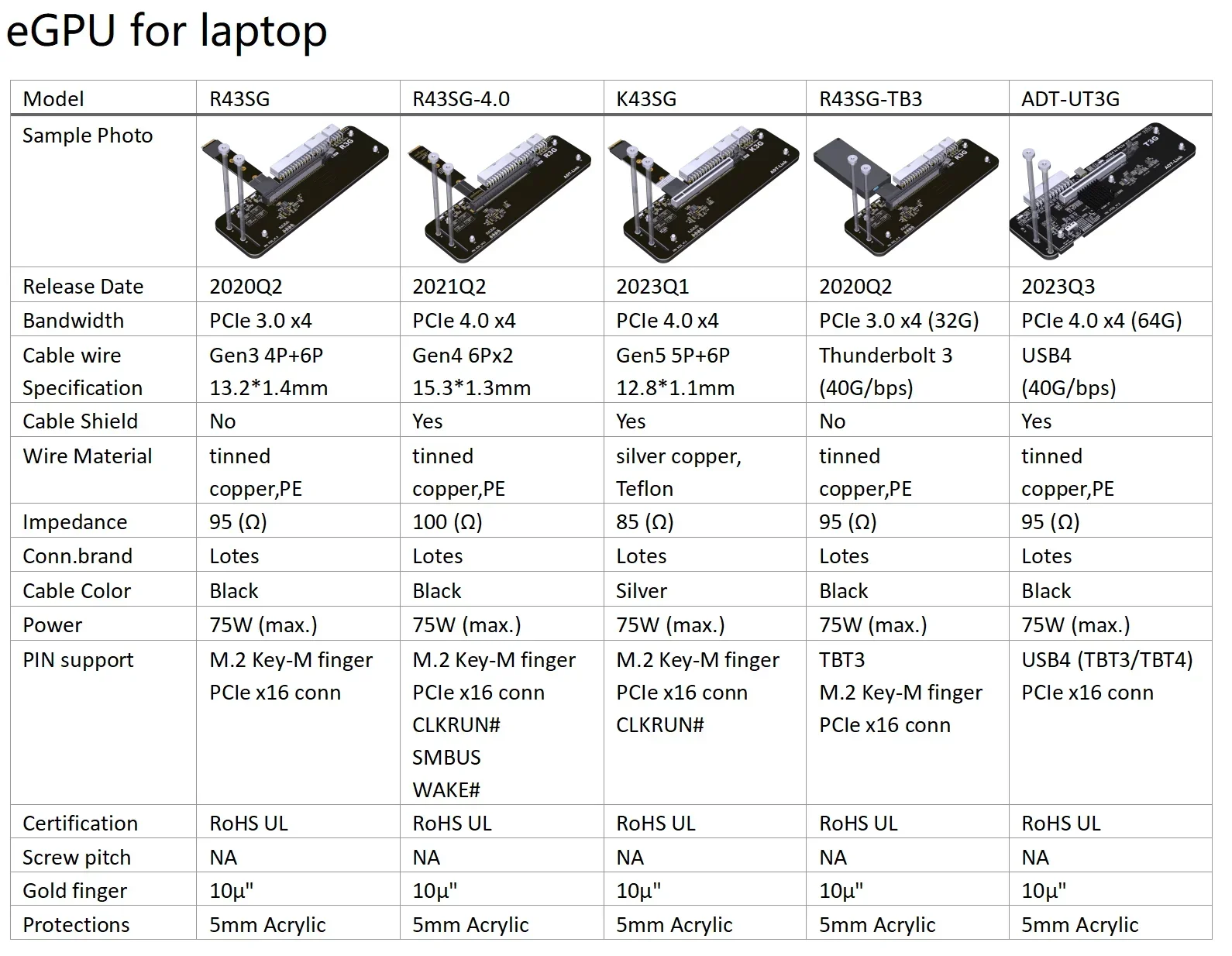 Comprar Adt-link-UT3G para NUC/ITX/STX/Nootbook, tarjetas gráficas para PC, portátil externo, USB4 a PCIe x16, conector eGPU, adaptador Thunderbolt 3/4