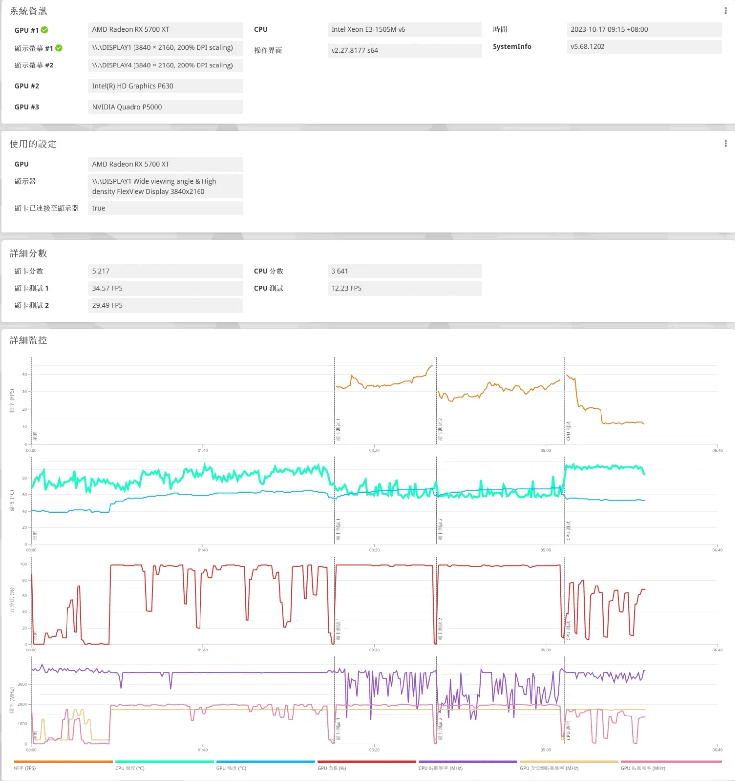 Los resultados de las pruebas en ejecución con el portátil Lenovo P71 y la pantalla interna AMD RT5700XT son los que se muestran arriba.