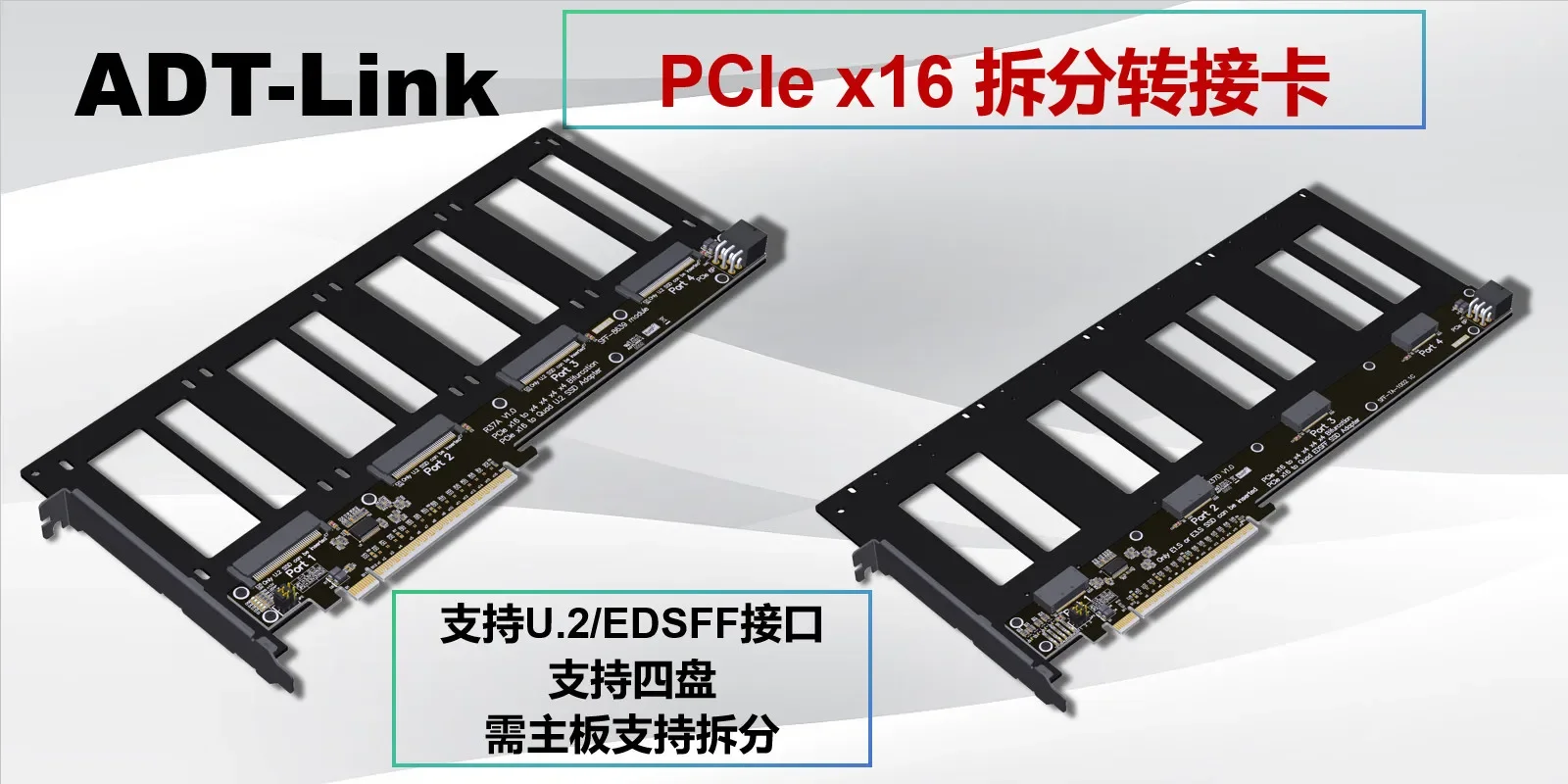 ADT-Link PCIe 5.0/4.0 x16 a 4 puertos U.2/EDSFF 4C+Adaptador