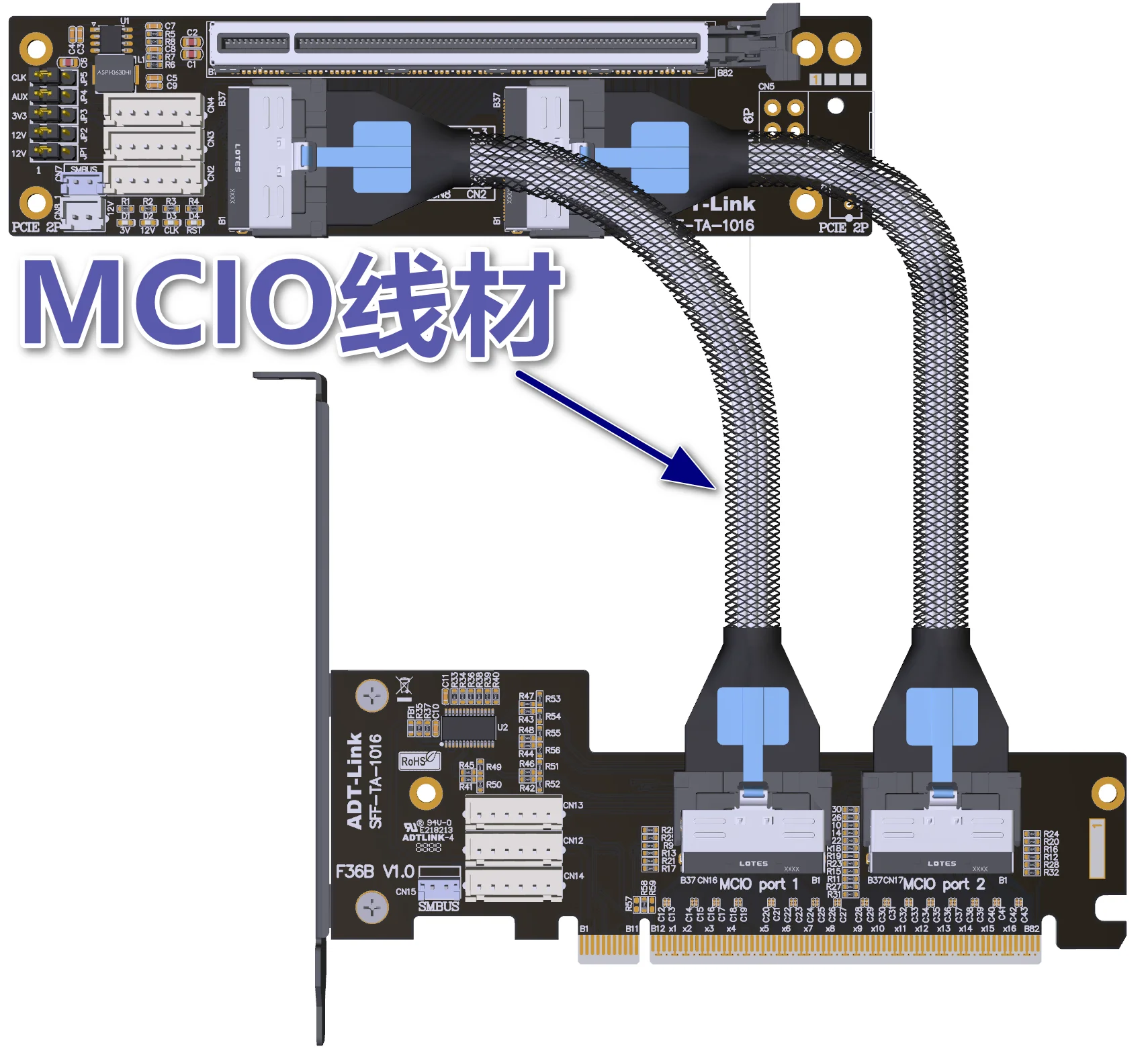 Nombre del producto: cable de extensión dividido PCIe 4.0 X16 MCIO