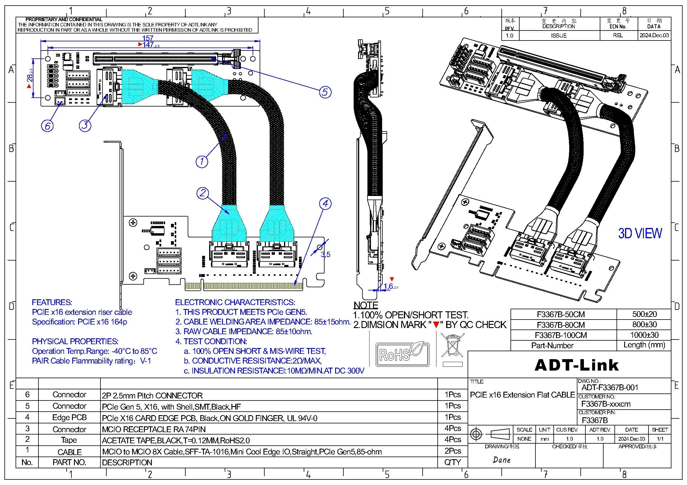 4, el material de la carcasa del conector es PA10T/LCP, el terminal chapado en oro de 15 μ" enchufable, alta frecuencia de acuerdo con los requisitos RoHS/Free (HF).