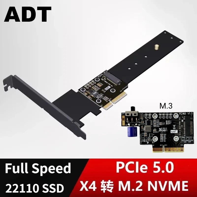 Comprar ADT PCIe 5,0x4 a M.2 M.3 NVME SSD adaptador de unidad de estado sólido soporte de tarjeta Gen 5 M.2 2280 22110 NVMe a PCI Express 4x convertidor