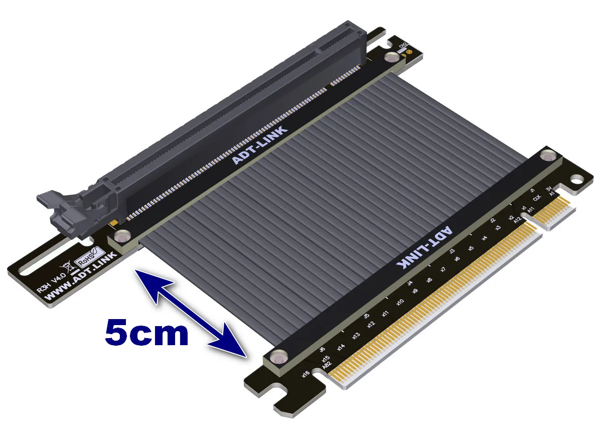 El cable es la cuarta generación de cables PCIe dedicados desarrollados y diseñados por ADT. El grosor del cable negro es de 1,3mm y el grosor del cable plateado es de 1,4mm. El cable se puede doblar y doblar sin afectar el uso.