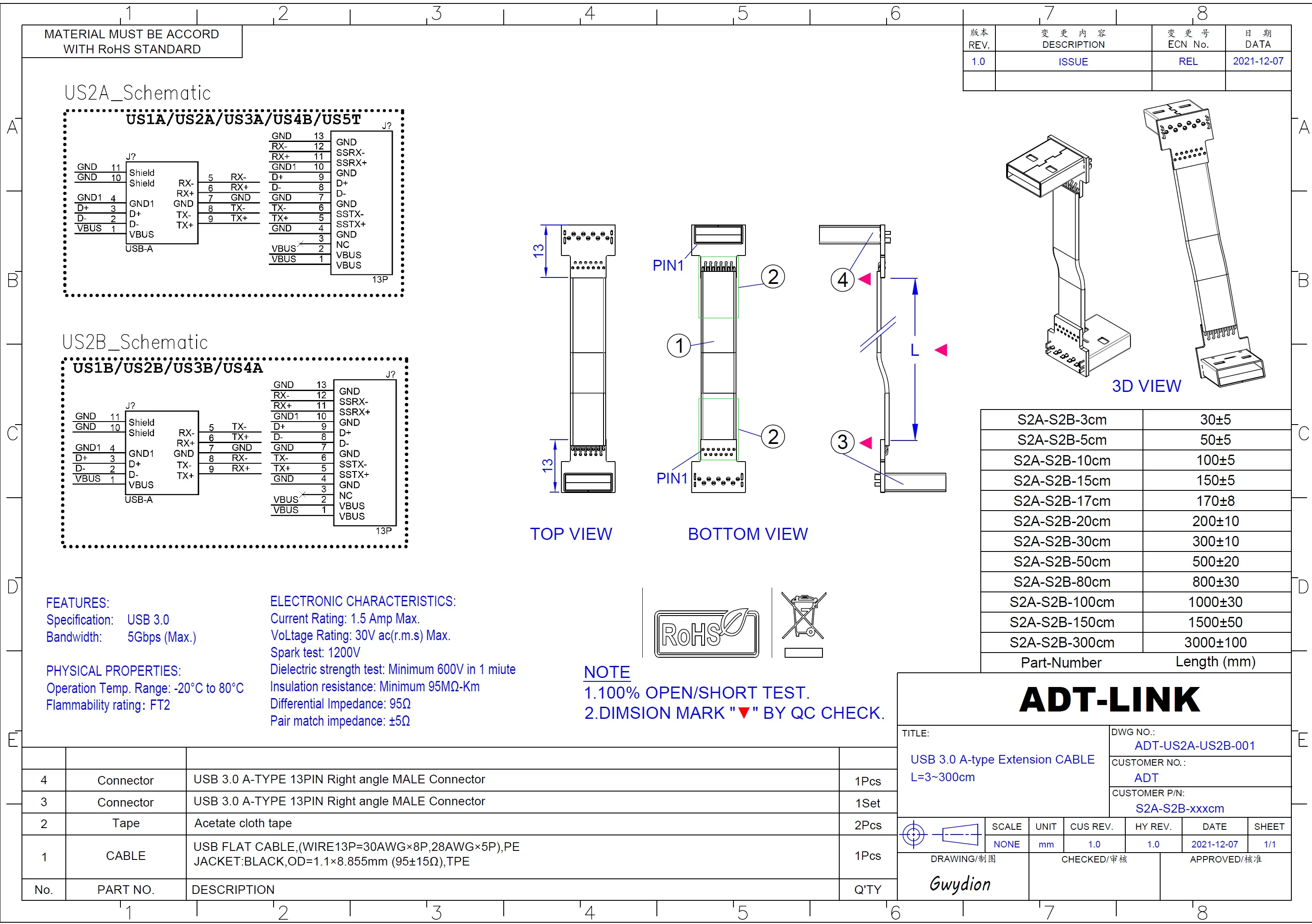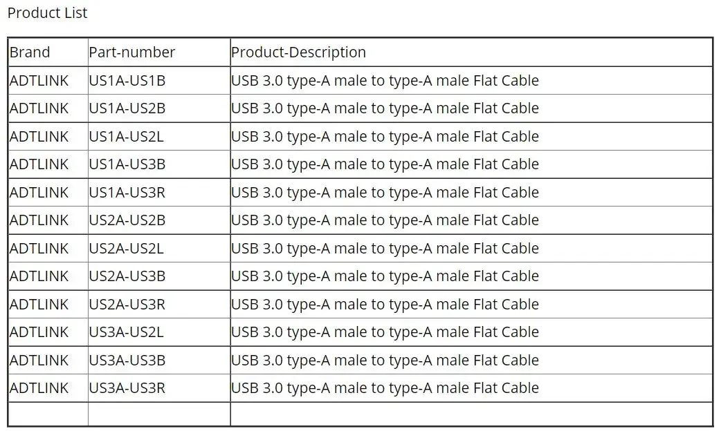 Nombre del producto: cable plano USB 3.0 tipo A macho a tipo A macho
