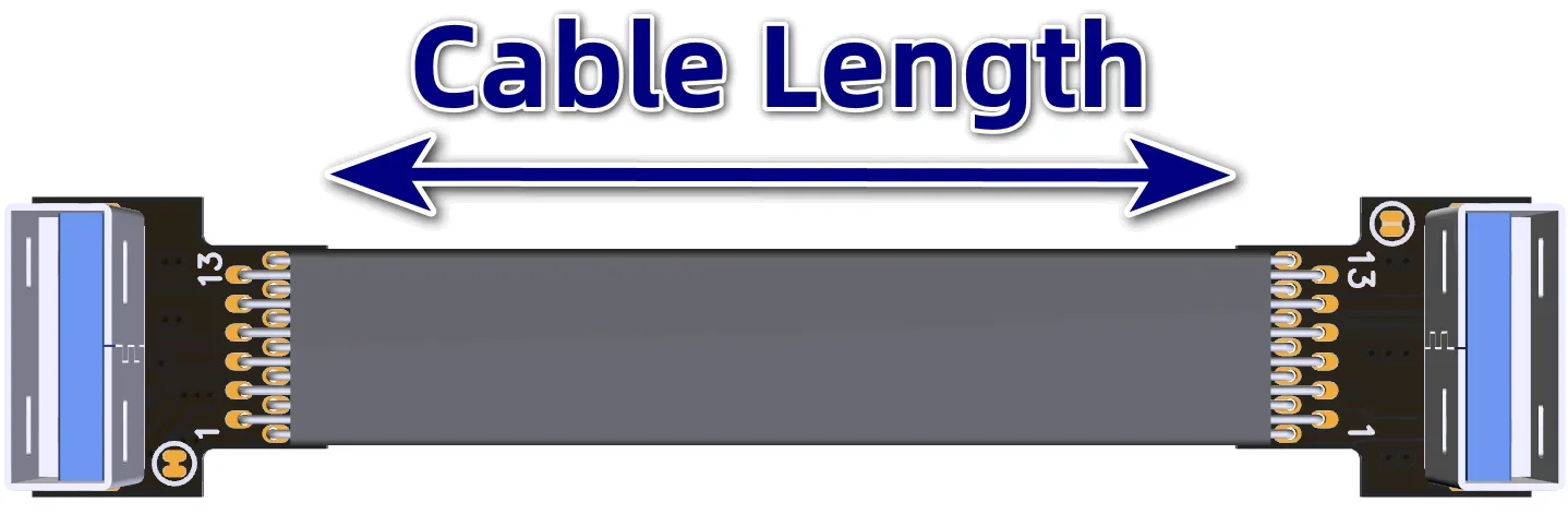 La longitud del cable se refiere a la parte del cable visible.No incluye la PCB ni el conector.Para conocer la longitud del cable, consulte la flecha azul de 5 cm en la siguiente figura.