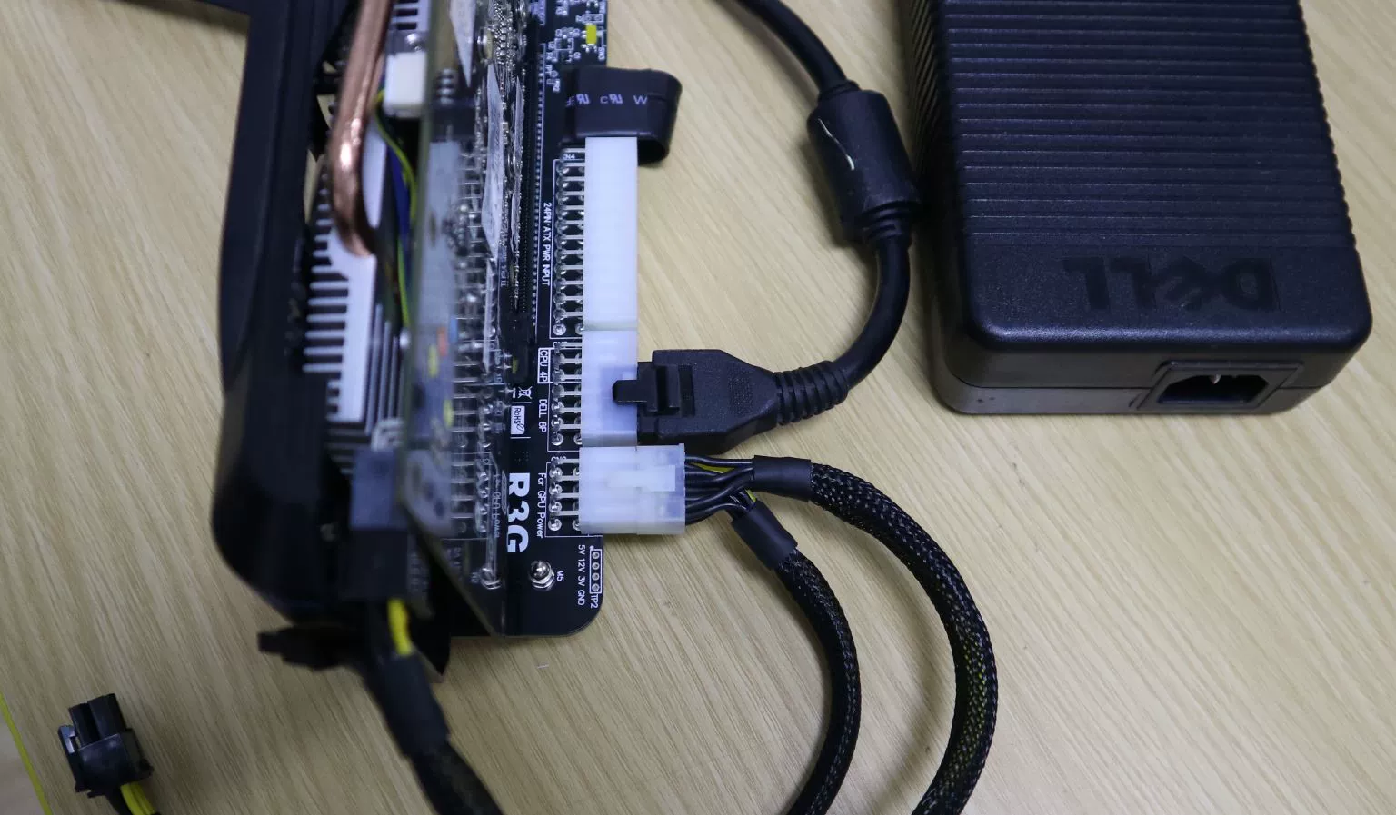 2.Instale la fuente de alimentación ATX o la fuente de alimentación DELL, incluido el cable de alimentación de la tarjeta gráfica, también debe conectarse; después de instalarla, la fuente de alimentación DELL se iluminará con luces naranjas.