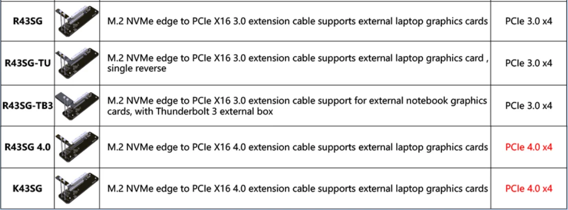 Aplicación: eGPU para NUC / ITX / STX / PC portátil(Solo admite interfaz M.2 NVMe, no admite interfaz M.2 SATA/M.2 WiFi/M.2 WWAN/USB)
