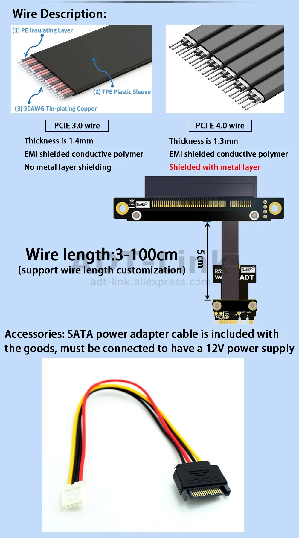 Comprar ADT Riser M.2 NGFF WiFi A.E interfaz clave a PCIe 3,0 4,0 X1 adaptador extensor de tarjeta Cable de extensión PCI Express PCI-E 1x5cm-50cm
