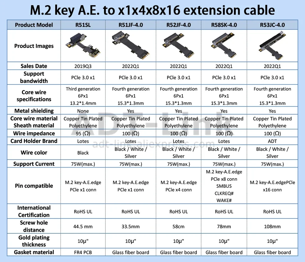 Product name: M.2_A.E. to PCIe x1x4x8x16 extension cable