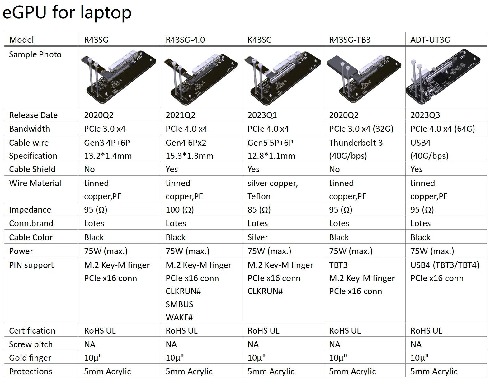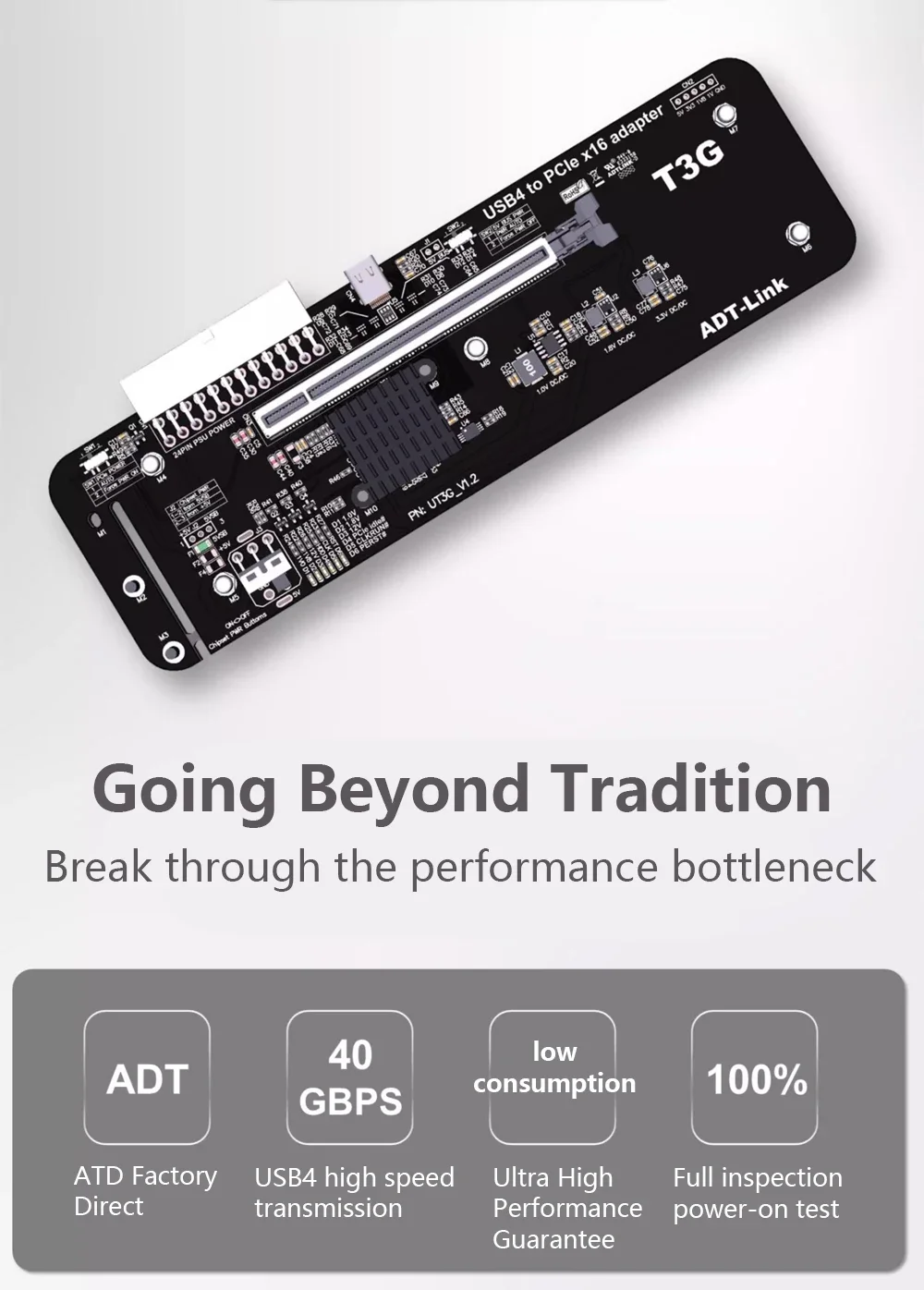 Comprar ADT UT3G V1.6 NUC ITX STX Notebook PC tarjeta gráfica externa USB4.0 a PCIe X16 eGPU adaptador PCIe 4,0 x4 GPU Dock Thunderbolt4/3