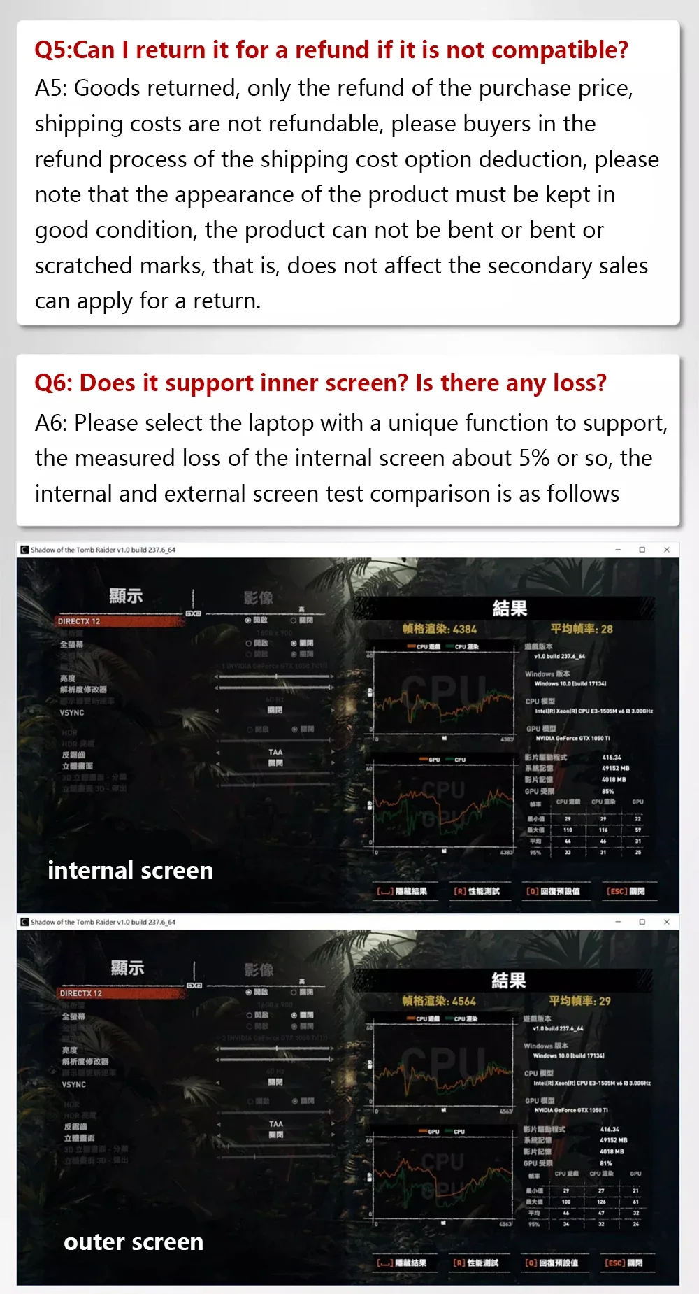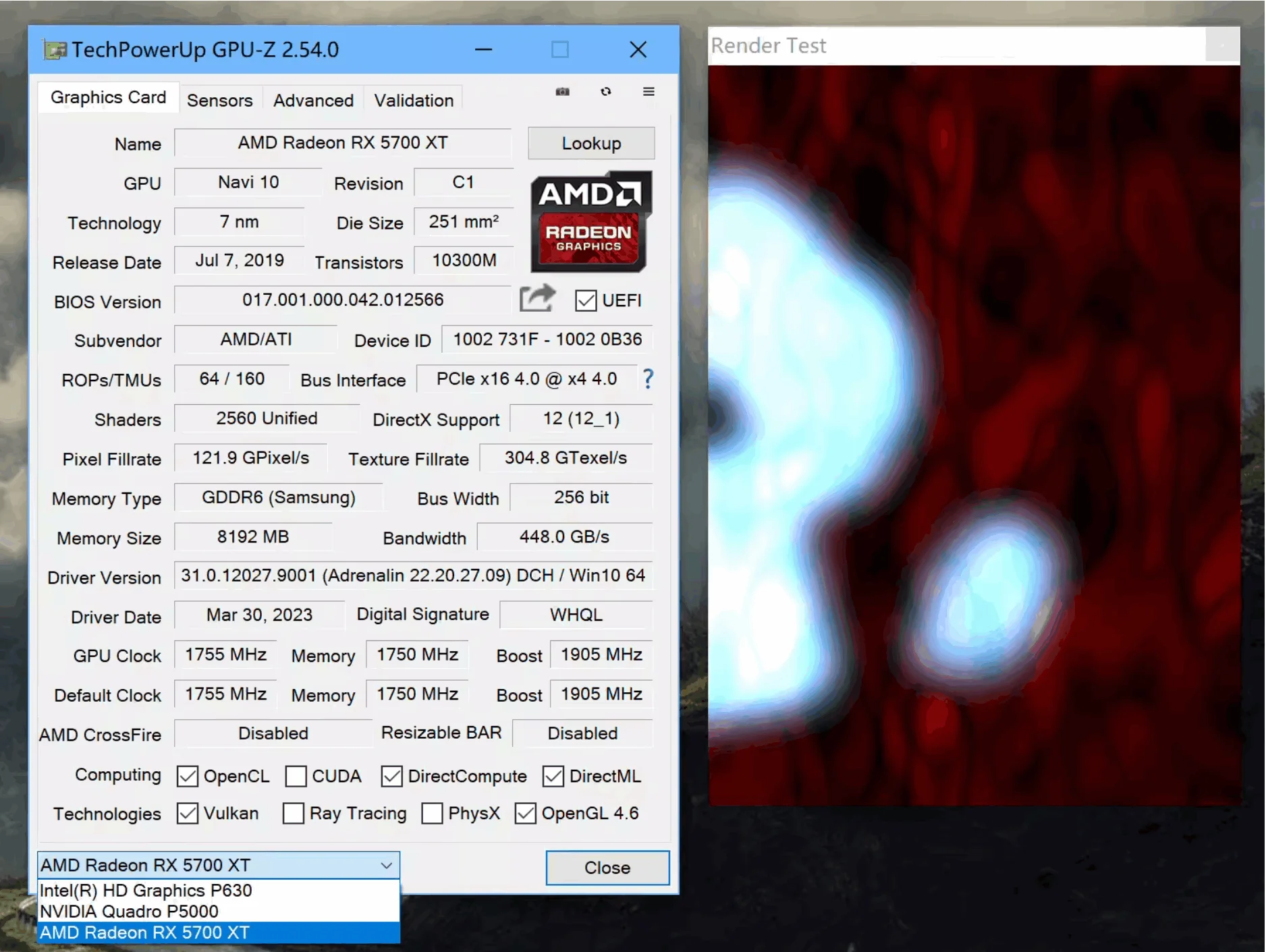 Los resultados de las pruebas en ejecución con el portátil Lenovo P71 y la pantalla interna AMD RT5700XT son los que se muestran arriba.