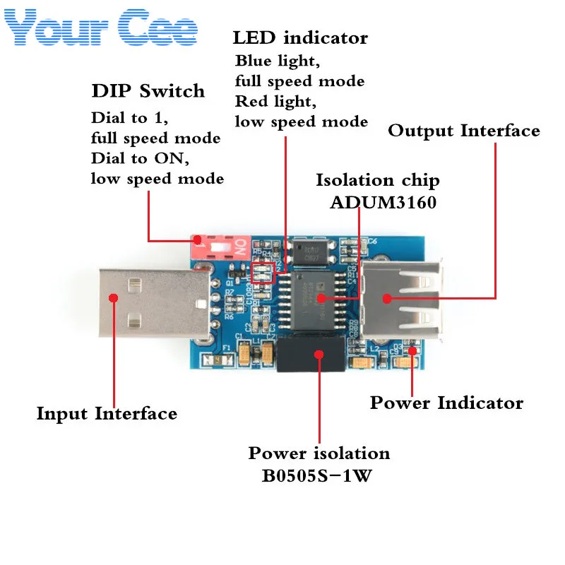El módulo de aislamiento USB se basa en la tecnología iCoupler y cumple con USB 2.0.Proporciona velocidades de datos totalmente aisladas de 1,5 Mbps y 12 Mbps, aísla 1500 V, no requiere fuente de alimentación externa y no requiere controladores.Utilice la hebilla USB para protegerse de una gran potencia externa y de una fuerte interferencia de señal, y proteja el puerto USB de la computadora y la placa base de la computadora.